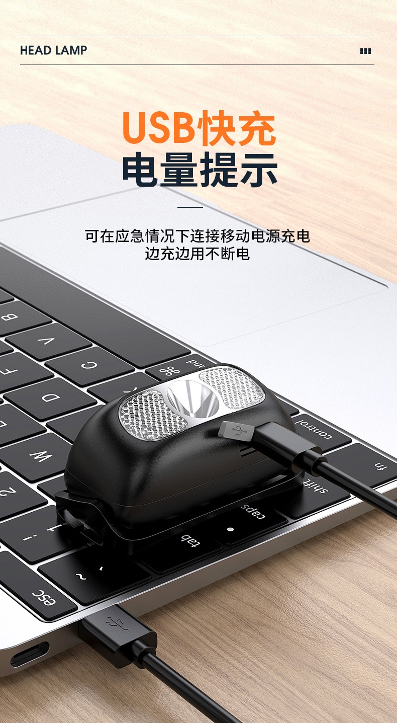 1、多样化充电,使用方便;设有USB充电接口,可使用充电器、充电宝、电脑等设备为产品充电。 2、此款头灯款式潮流、设计小巧、携带方便、头带材质柔软、可自由拆卸、便于清洗。