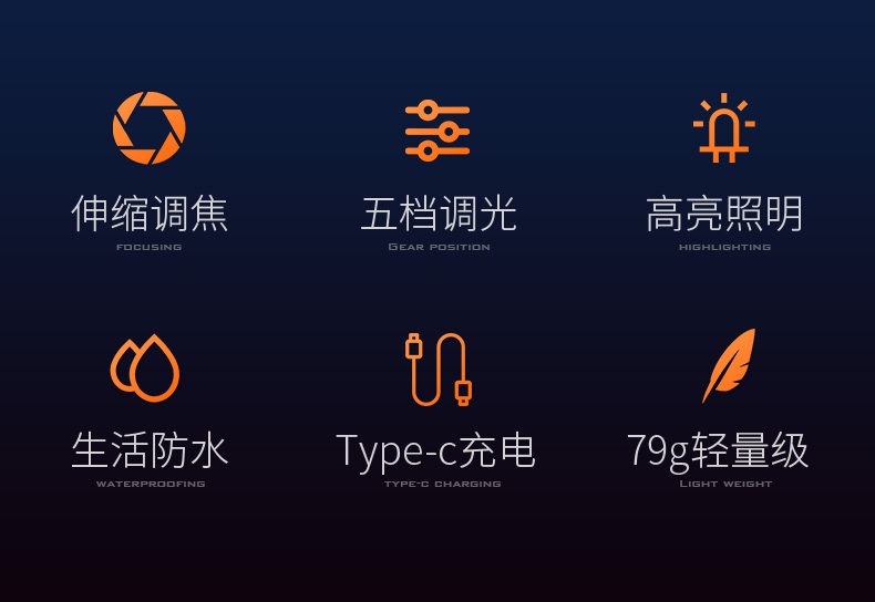 1、多档调光、可满足不同场景下的使用需求。 2、伸缩调焦、聚泛随心。