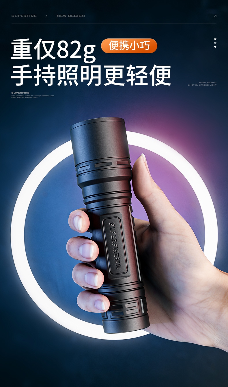 1、千米远射,射程更远,光斑更聚焦。 2、进口灯珠,亮度高,照明效果更好。 3、前后双按键,光源一键点亮,高亮瞬间开启。