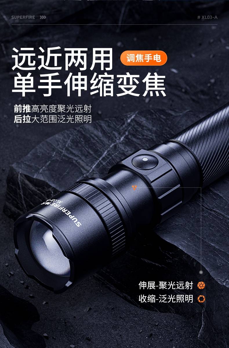 1、多档调光、可满足不同场景下的使用需求。 2、专利外观,时尚精致,小巧便携。 3、伸缩调焦、聚泛随心。