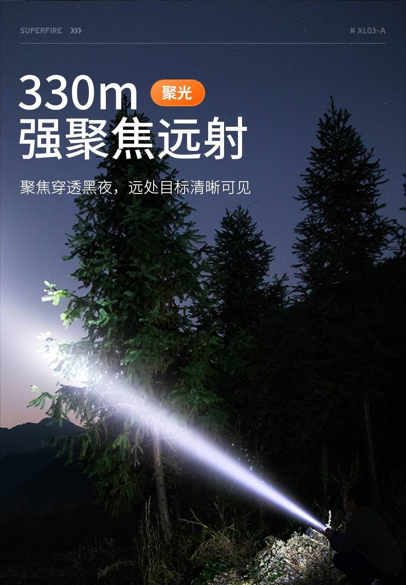 6、最高220Lm亮度,最远330m 射程,小身材大能量。