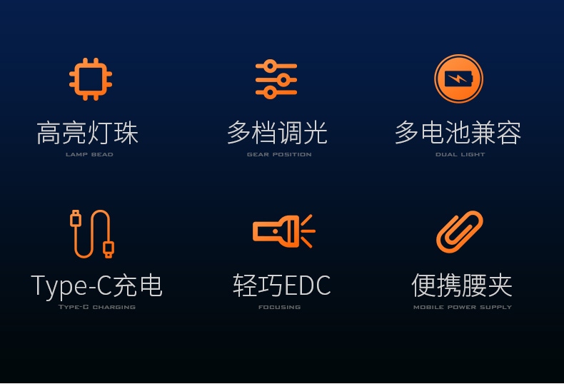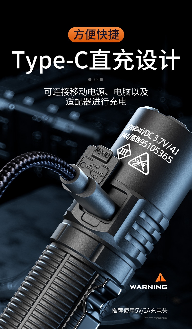 四档调光 Type-C充电 电量显示 铝合金筒身 持久续航 强力防水