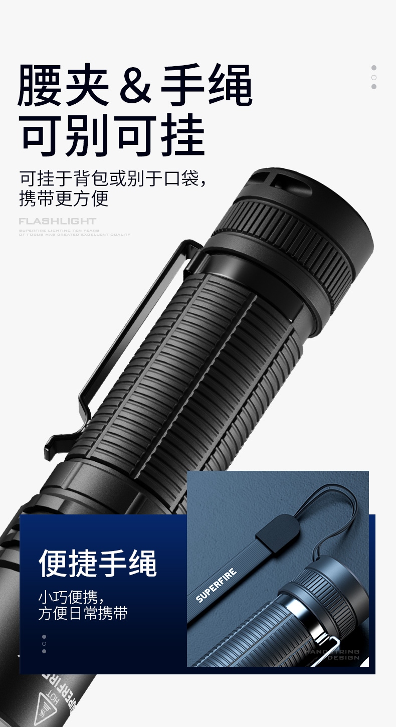 6、含腰夹及手绳,可别可挂,多种携带方式更方便。
