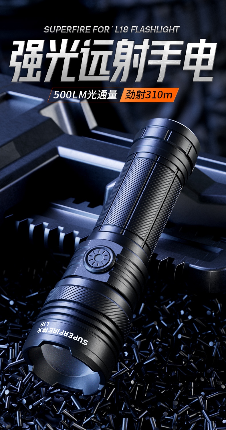 1、多档调光,满足不同环境下使用需求。 2、铝合金筒身,防水耐摔。 3、推拉灯头可实现伸缩调焦。