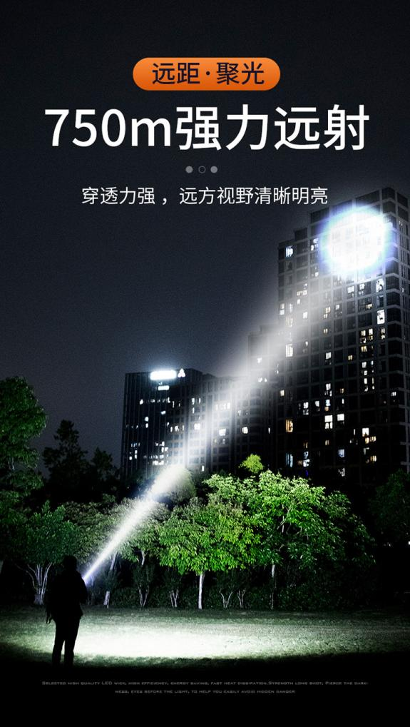 当然,一个灯珠的强大与否不单单只是看亮度,射程也同样不可或缺。以Y32为例,在开启聚光模式的情况下Y32最远射程可达约750m,轻松点亮,光束击穿黑夜,一键照亮远处目标,白色光斑清晰可见。
