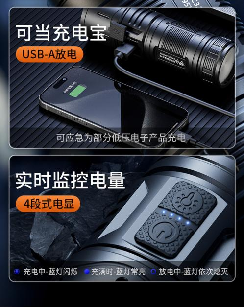 除了日常照明以外,续航能力也是大部分户外爱好者选购手电的着重点之一。在进行夜间维修作业或者实地探索时,工作时长往往无法做到十分精确的,在这种情况下,手电筒的电量则需要尽可能持久地支持夜间作业。强大的续航能力通常和大容量电池,以及便捷的充电换电设计相关,所以这也成为了选择高性能手电所需要考虑的重要因素之一。