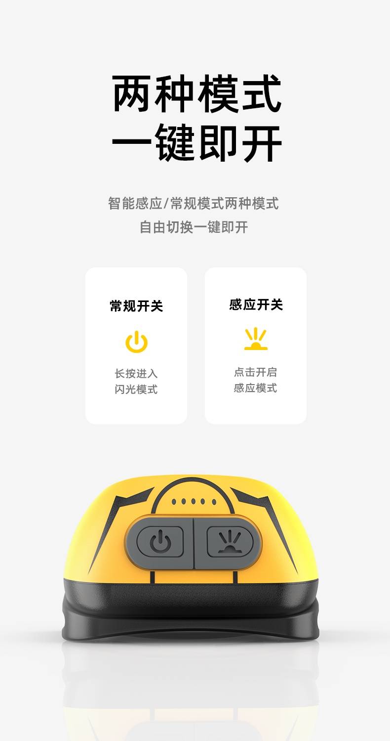 1.单击左边开关开启感应功能,同时开启强光档,续按关闭感应功能(关闭感应功能,光源不会关闭),当感应功能开启时,单击右边开关可正常调节档位。 2.多样化充电,使用方便:设有Type-c充电口,可使用充电器、充电宝、电脑等设备为灯具充电。 3.电量显示:实时