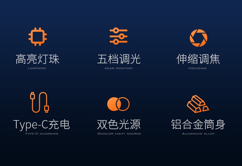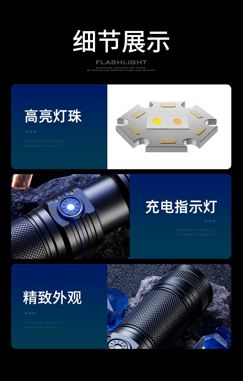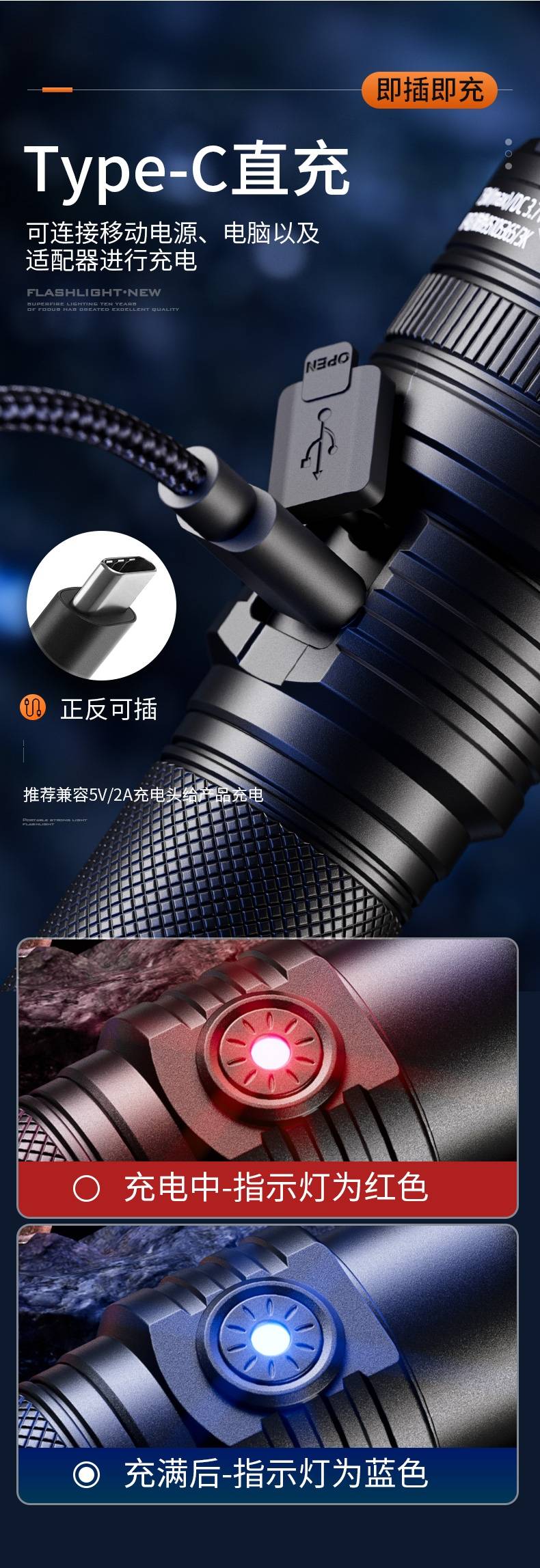 四档调光 Type-C充电 电量显示 铝合金筒身 持久续航 强力防水