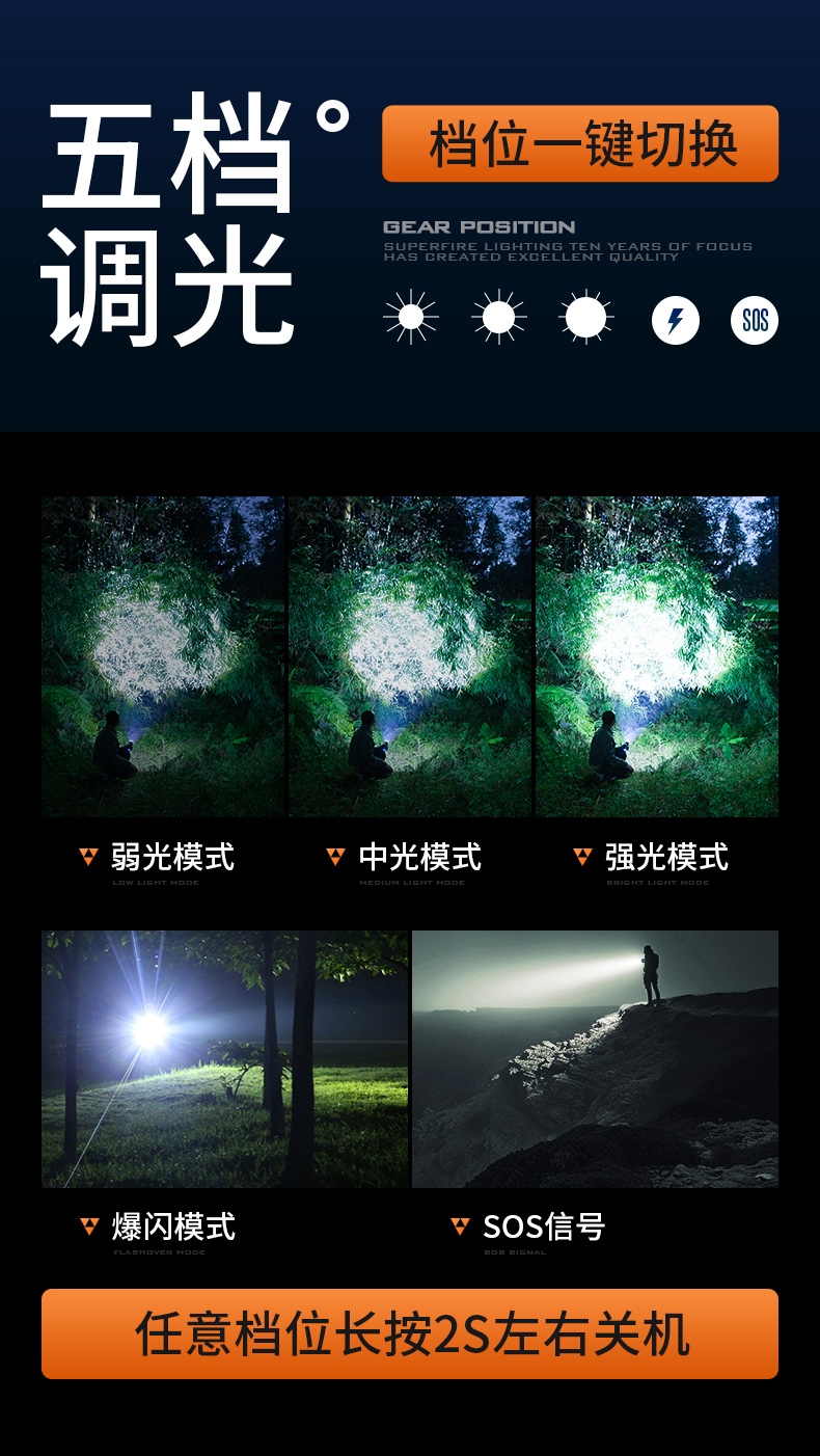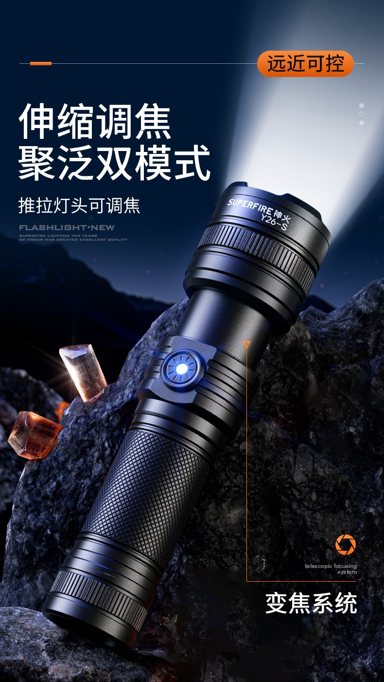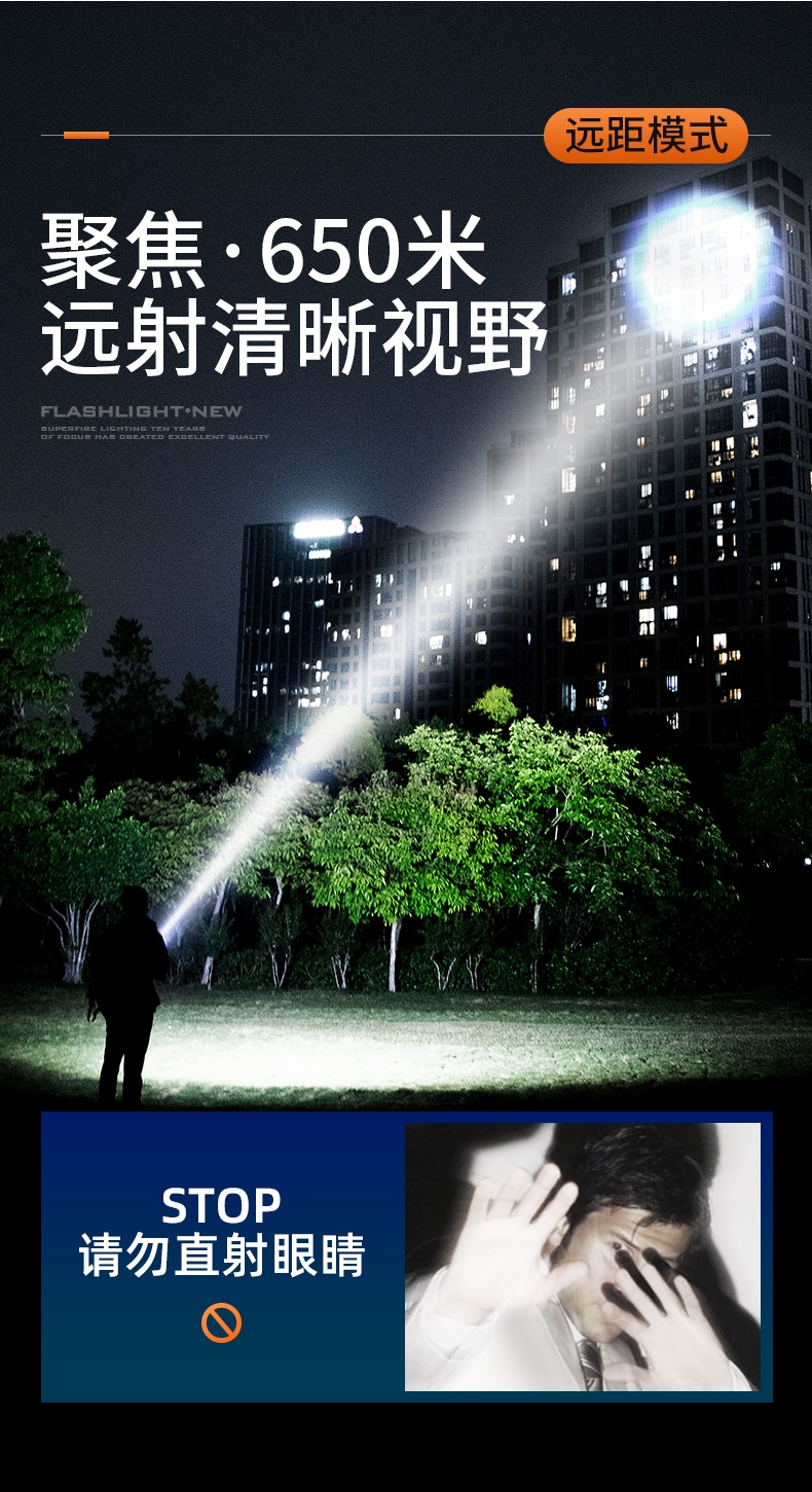 3、伸缩调焦,高亮远射灯珠,照明效果好。