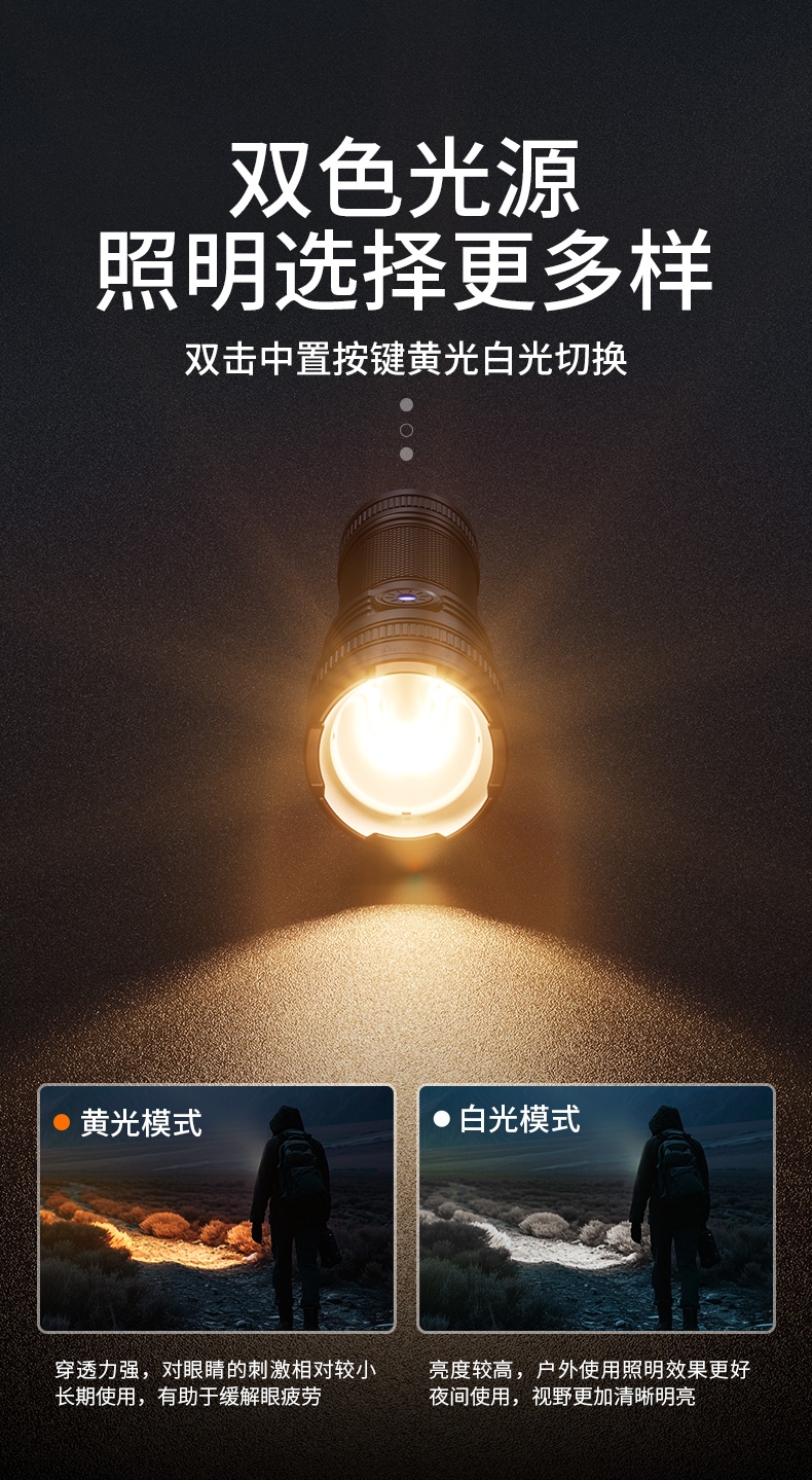 9、双色光源自由切换,可满足多种不同环境下使用。