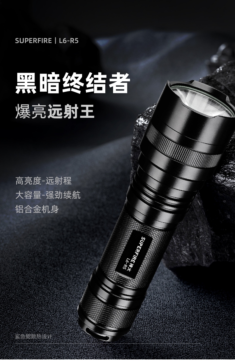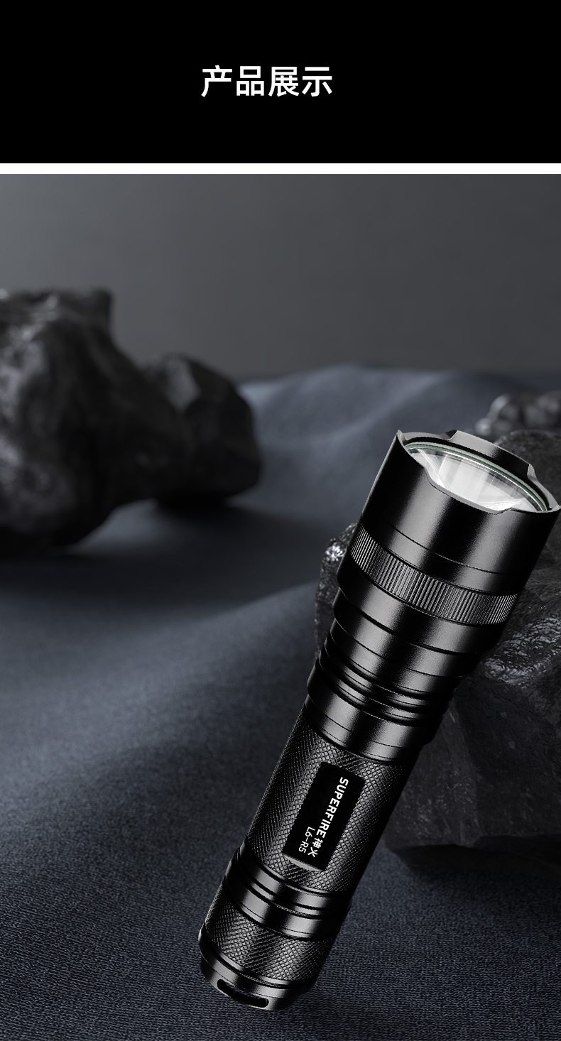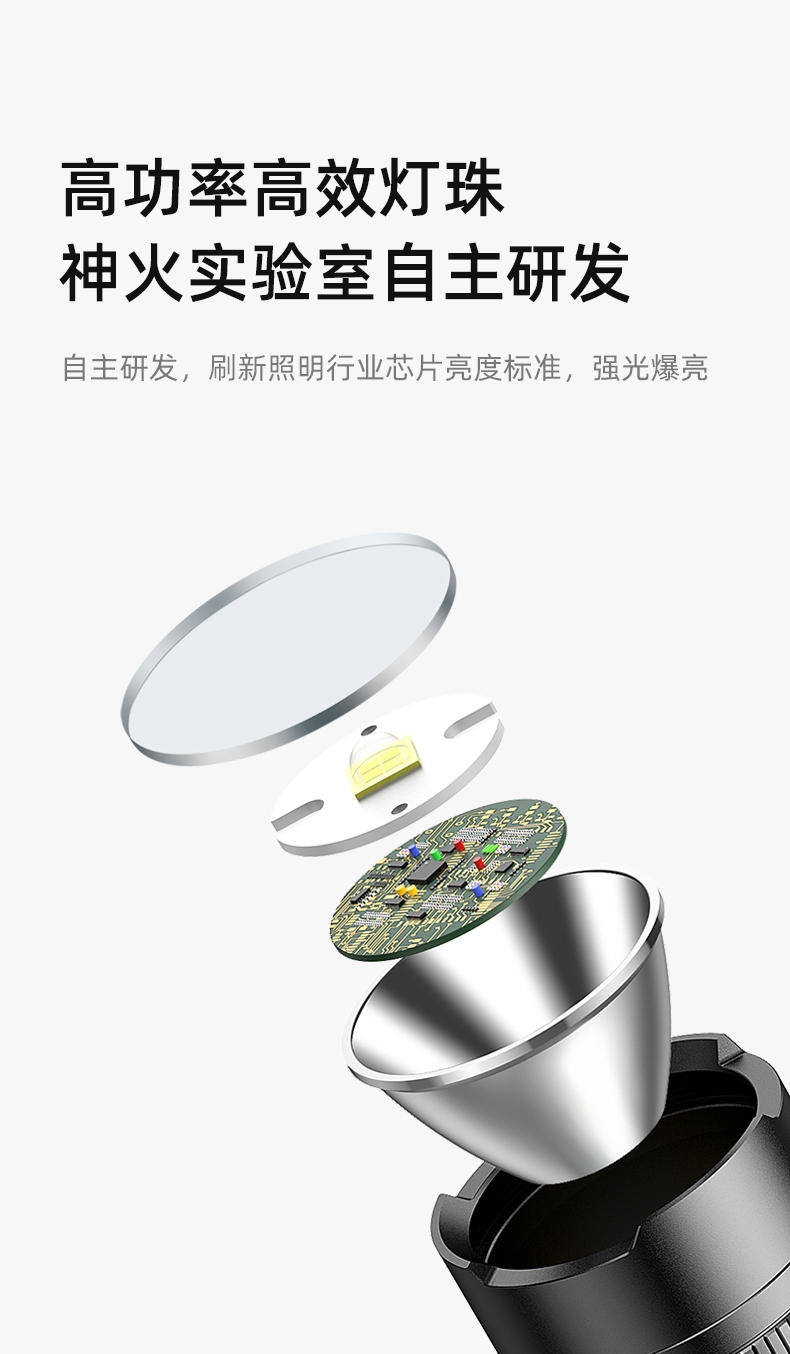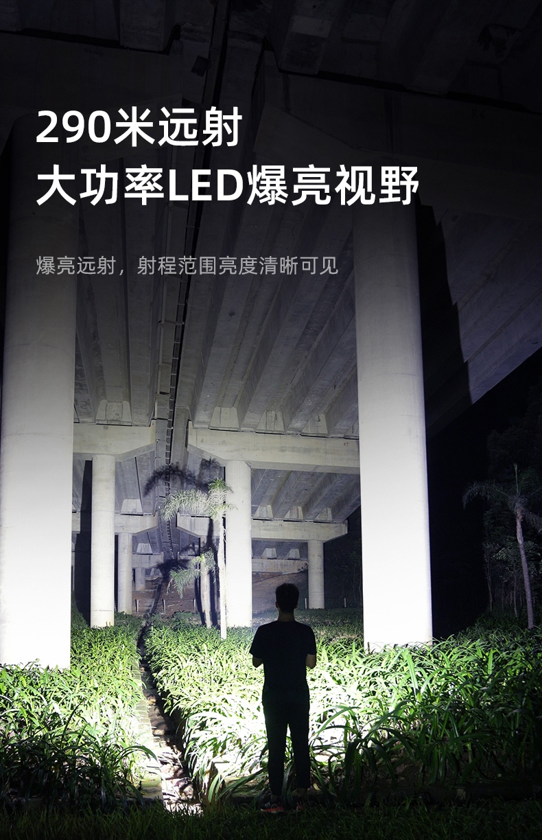 1、千米远射,射程更远,光斑更聚焦。 2、进口灯珠,亮度高,照明效果更好。 3、前后双按键,光源一键点亮,高亮瞬间开启。