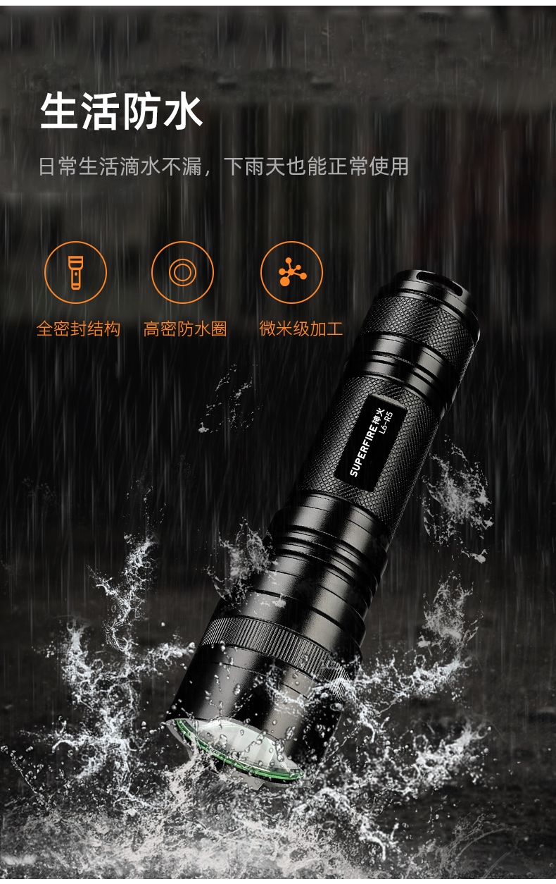四档调光 Type-C充电 电量显示 铝合金筒身 持久续航 强力防水