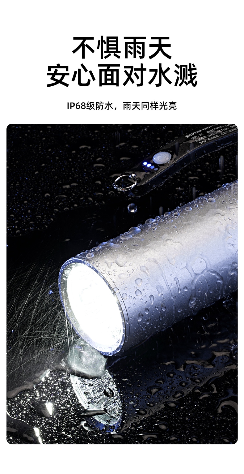 四档调光 Type-C充电 电量显示 铝合金筒身 持久续航 强力防水