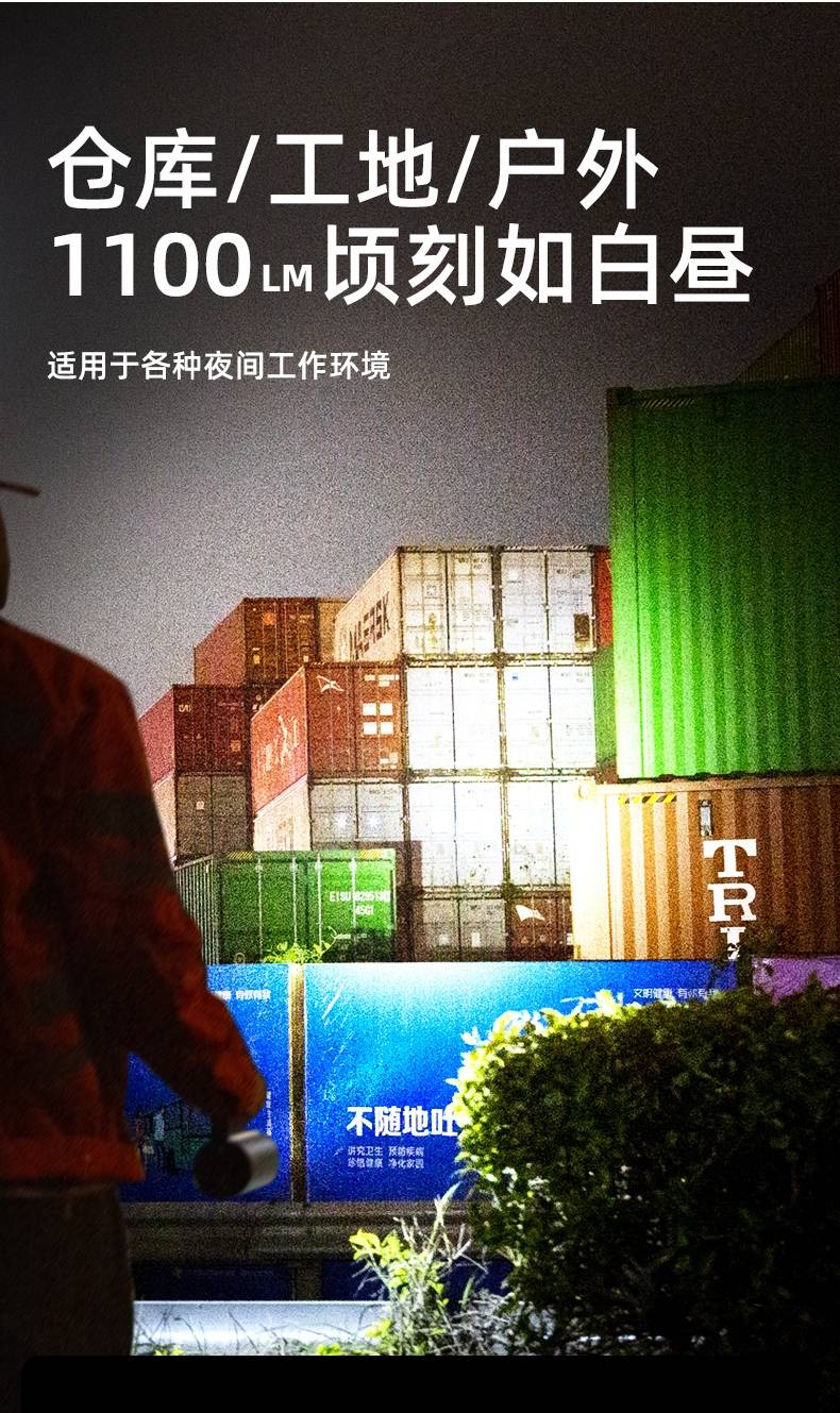 聚光主灯 亮度随心 轻按后端开关按钮,主灯强光点亮,续按依次切换主灯工作光-爆闪光。主灯开启状态下长按5秒,可实现光源色温转换。主灯关闭状态下长按5秒,可开启灯具最亮照明模式。 爆亮强光 亮如白昼 1500LM大功率高亮光源,点亮顷刻如白昼