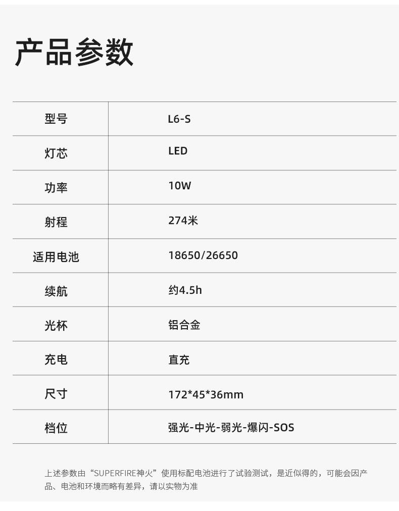 L6姐妹款,26650电池高续航,中置开关大功率手电