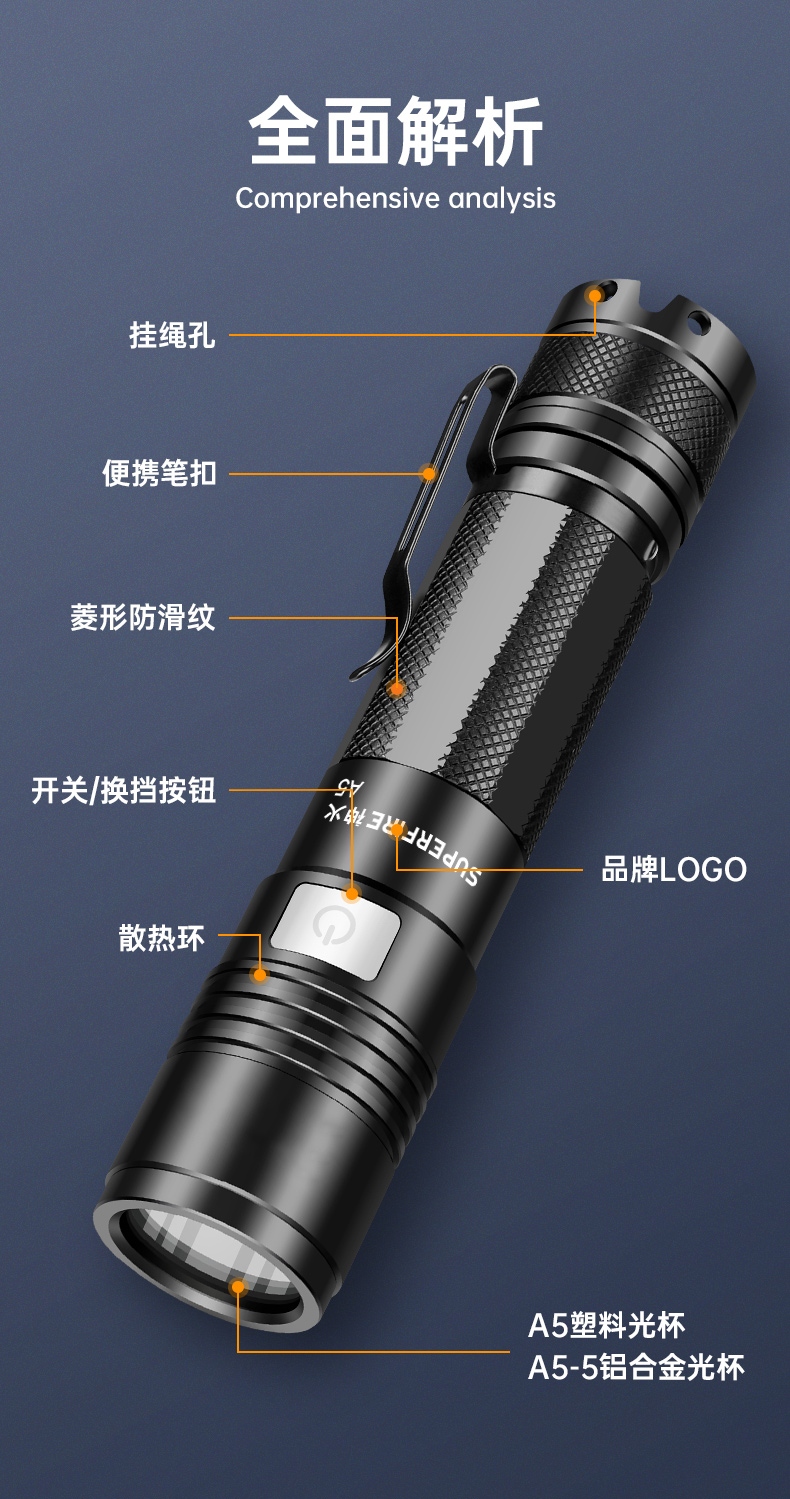 四档调光 Type-C充电 电量显示 铝合金筒身 持久续航 强力防水
