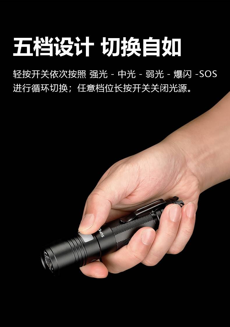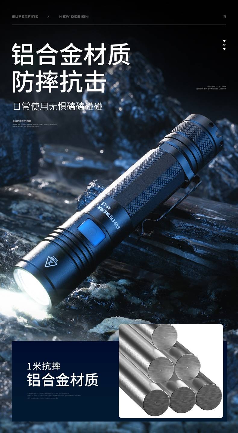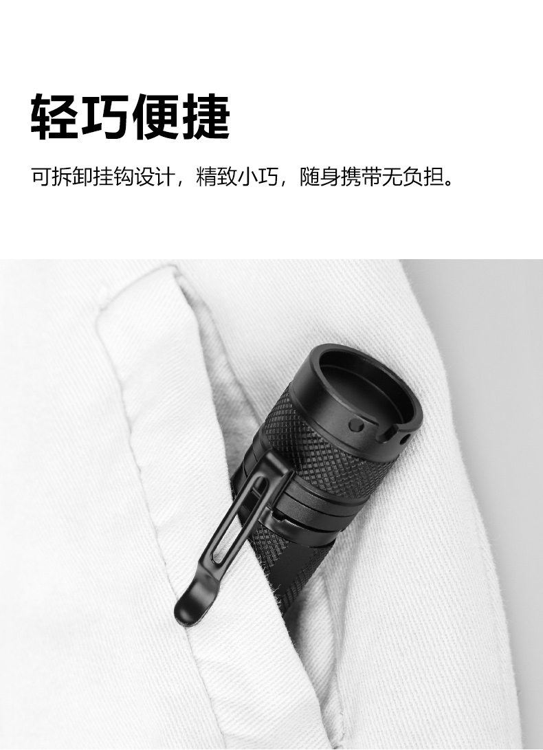 1、多档调光,可满足不同使用场景下的照明需求。 2、多种安全程序,可有效保护手电使用安全,延长手电使用寿命。 3、非精致外观,时尚小巧。