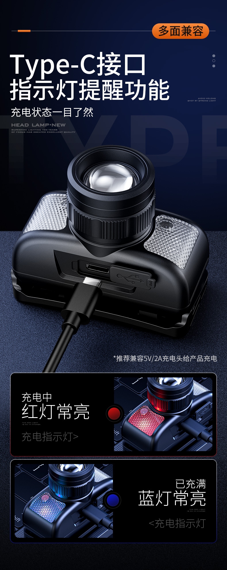 强光亮度,运动头灯,前后均衡设计,轻便不压头,可调节式头灯带,佩戴方便舒适,伸缩调焦,光照范围大,照射距离远,头灯角度调节,超90度角度随意调节,适宜各种环境使用