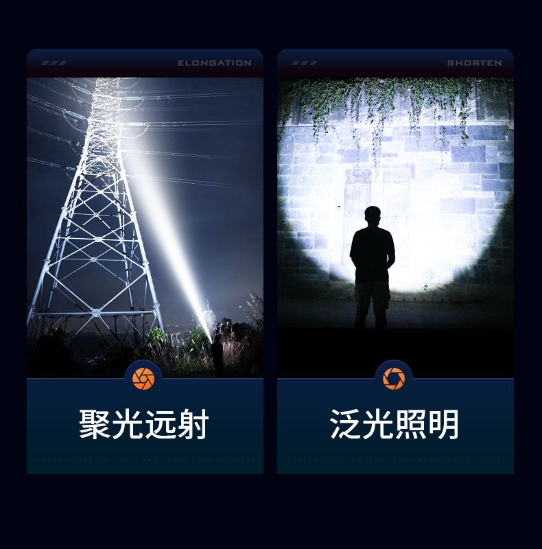 1、伸缩调焦、聚泛随心。 2、Type-c充电,兼容市面通用充电线,可正反盲插。