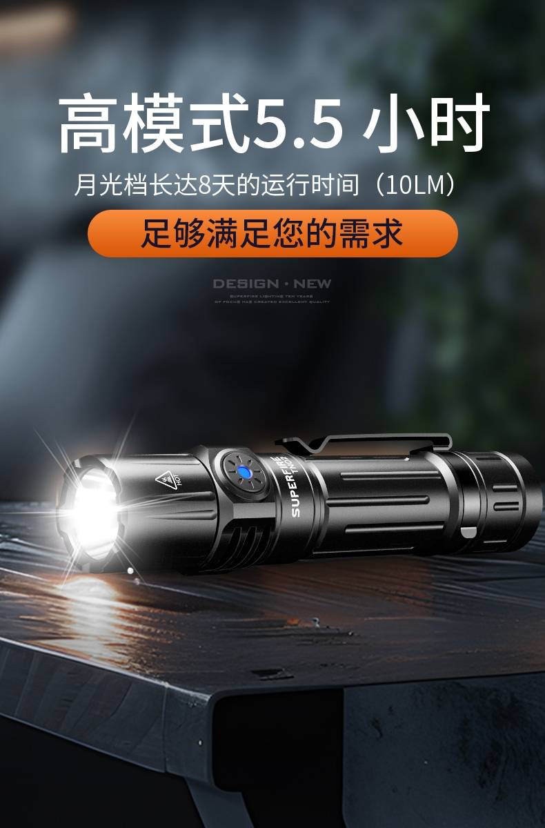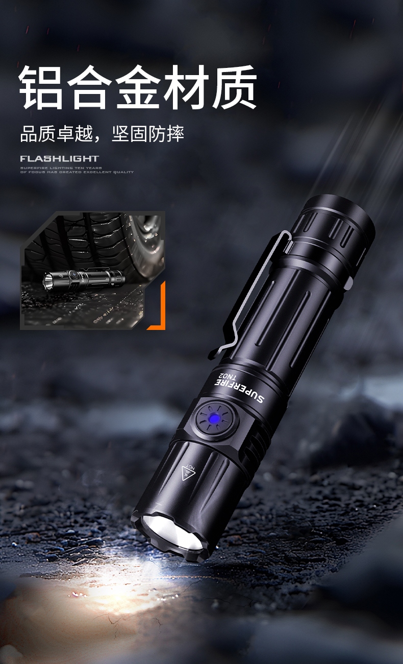 四档调光 Type-C充电 电量显示 铝合金筒身 持久续航 强力防水