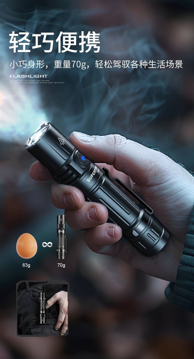 3、定焦小直手电,强光照明,光斑明亮,效果更佳。
