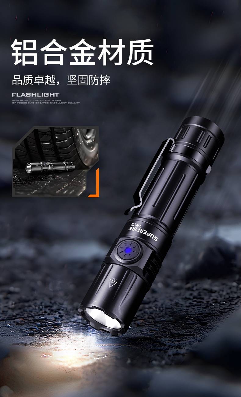 7、铝合金筒身,防水耐摔。