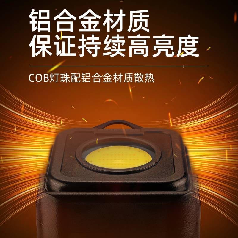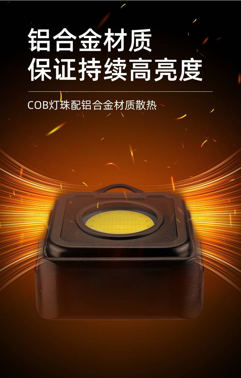 1、多档调光,可满足不同使用场景下的照明需求; 2、含提手,握感更舒适。携带更简单; 3、新型高亮远射灯珠,60W大功率,亮度高,照明效果好。