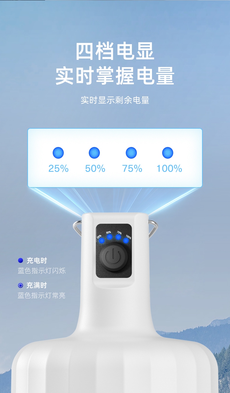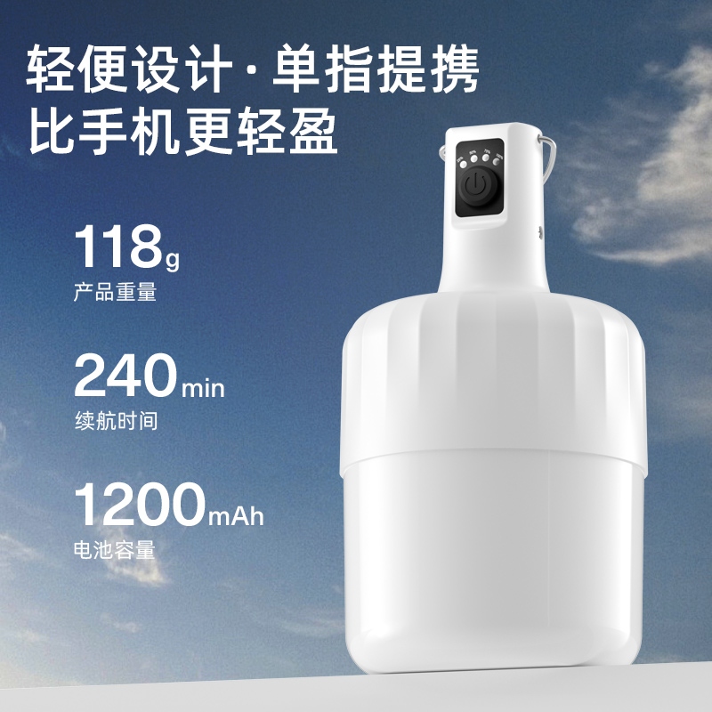 2.多样化充电,使用方便:可使用充电器、充电宝、电脑等设备为灯具充电。充电时可边充电边使用照明功能