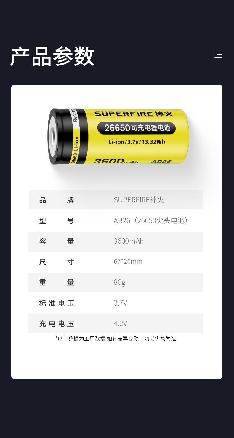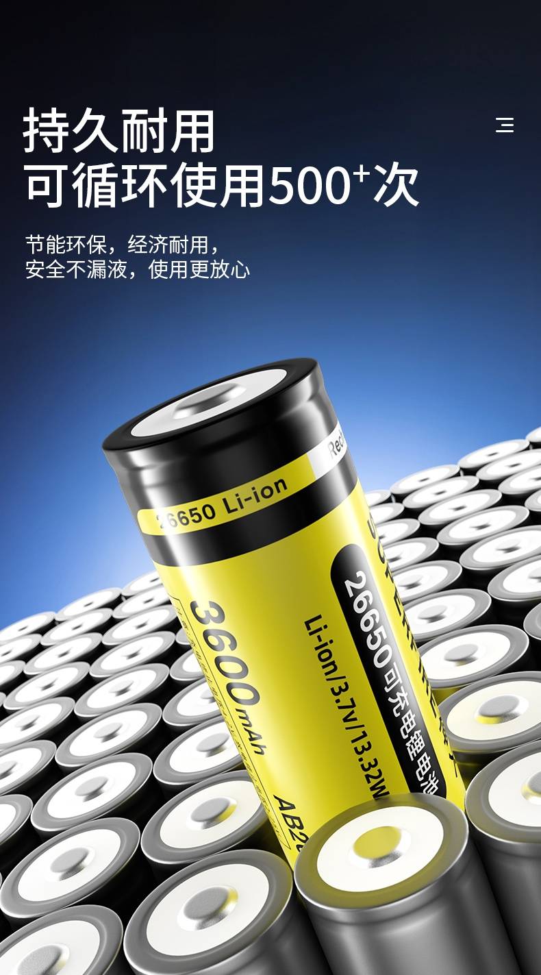 1、3C认证实标电池,真实续航,拒绝虚标,证件齐全安全有保障、澎湃性能、标准电压动力强劲; 2、防爆外壳,高强度不锈钢设计,有效降低电池因碰撞,冲击而短路的风险; 3、持久耐用,可循环使用500+次,节能环保,经济耐用;