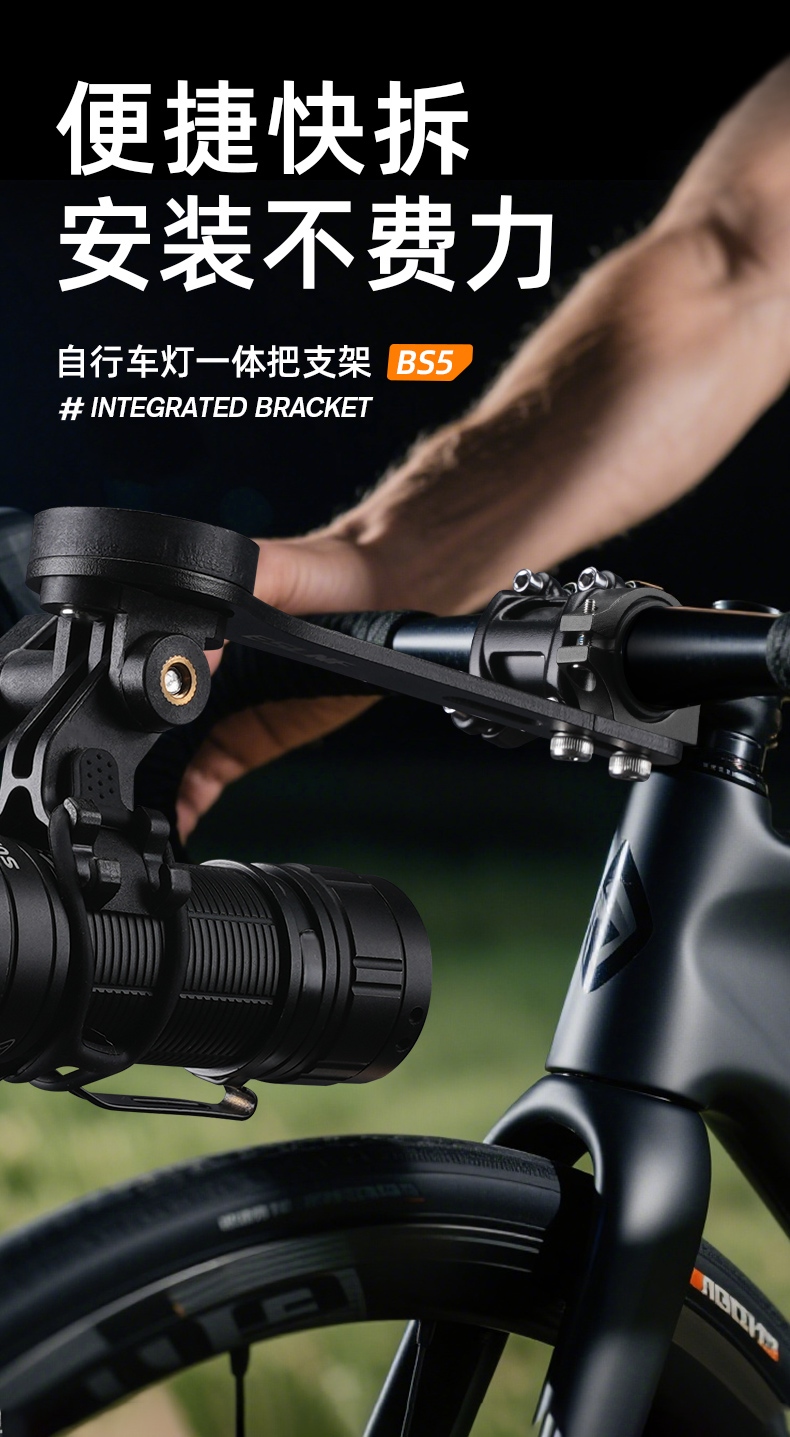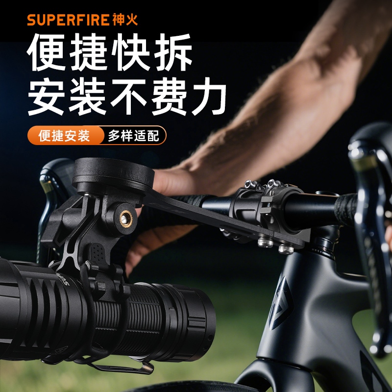 3、六角螺丝便捷锁定,配置下挂接头和手电夹,车灯类型随心选择;
