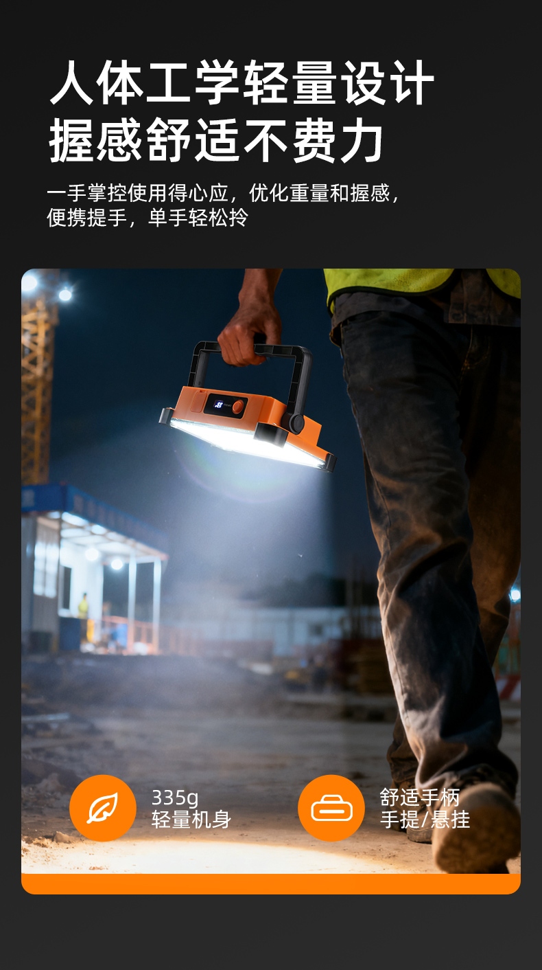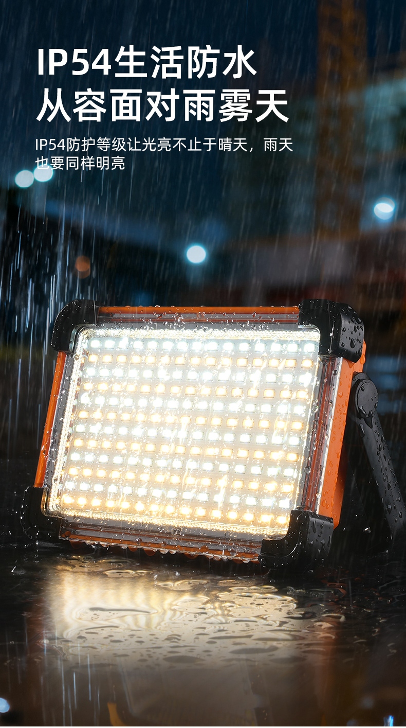 1、多档调光,可满足不同使用场景下的照明需求; 2、含提手,握感更舒适。携带更简单; 3、新型高亮远射灯珠,60W大功率,亮度高,照明效果好。