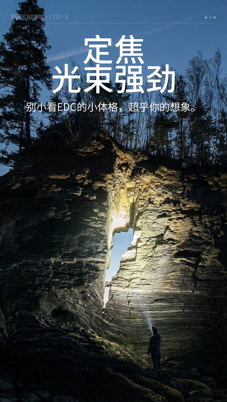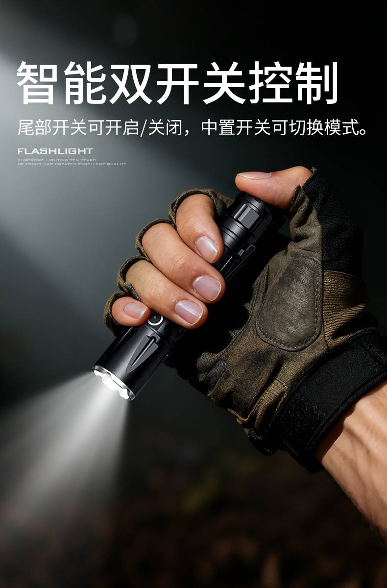 3、定焦小直手电,强光照明,光斑明亮,效果更佳。