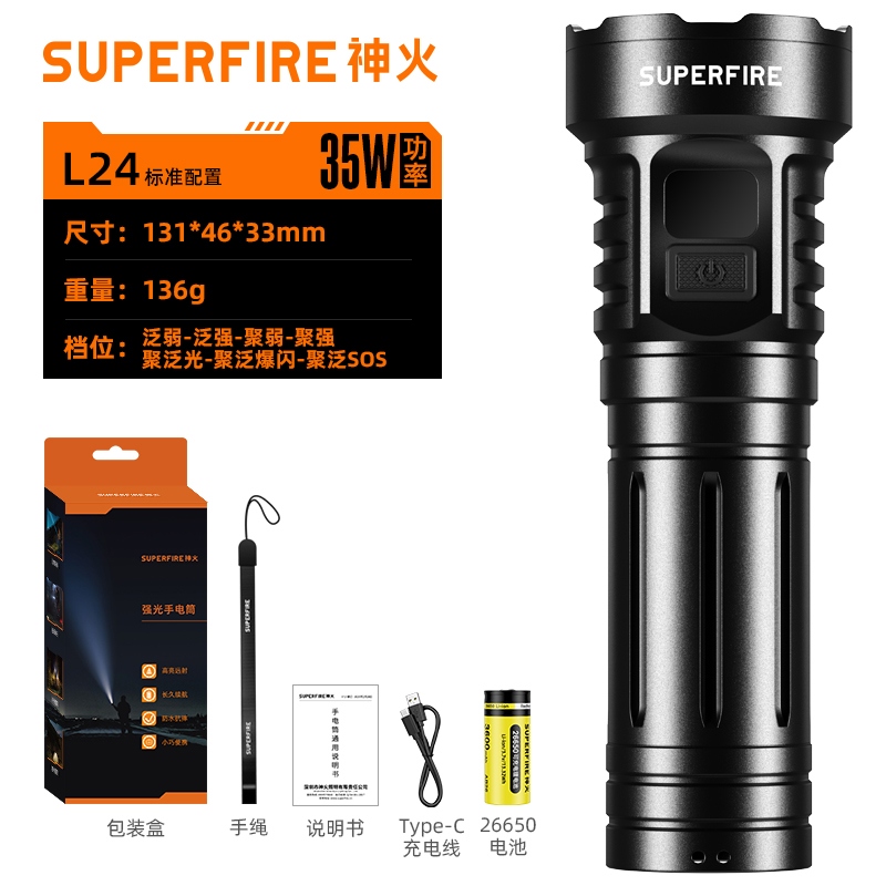 1、千米远射,射程更远,光斑更聚焦。 2、进口灯珠,亮度高,照明效果更好。 3、前后双按键,光源一键点亮,高亮瞬间开启。