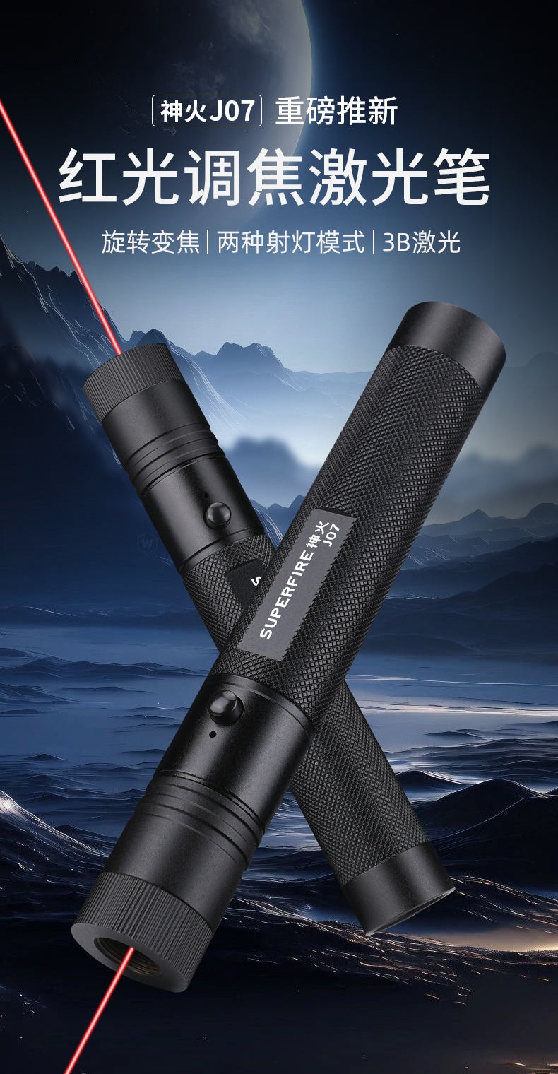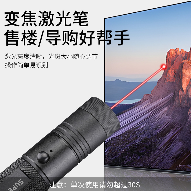 1、单射灯模式,红色激光笔可用于会议及教案宣讲,重点信息指引; 2、十字射灯模式,灯光绚丽,可玩性强。 3、铝合金外壳,稳定性好,耐压耐摔耐高温。 4、3B类激光,千米远射,光色纯,功耗低。 5、可调焦,光斑大小可调。