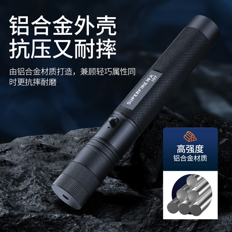 1、千米远射,射程更远,光斑更聚焦。 2、进口灯珠,亮度高,照明效果更好。 3、前后双按键,光源一键点亮,高亮瞬间开启。