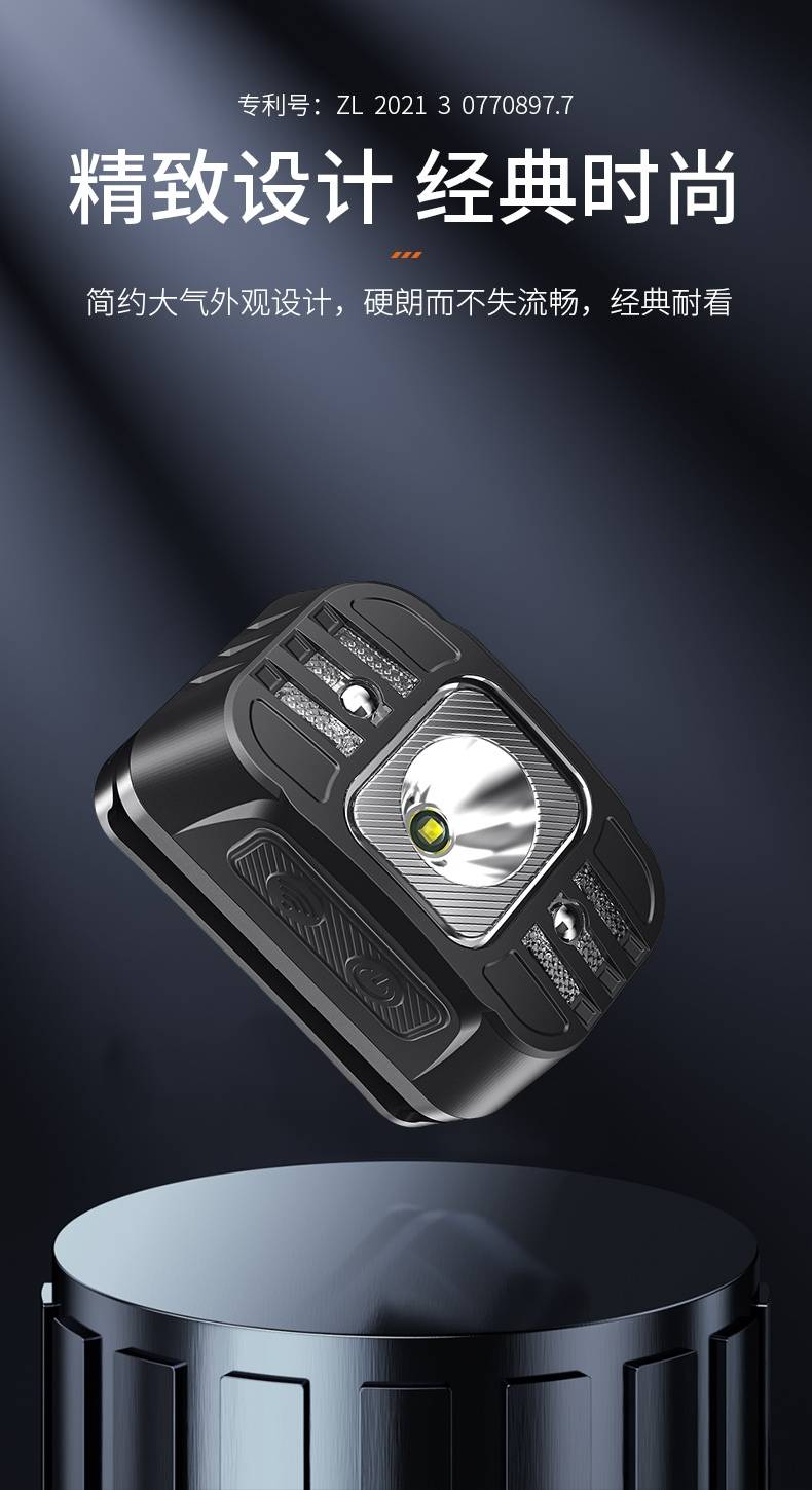 5、此款头灯款式潮流、设计小巧、携带方便、头带材质柔软、可自由拆卸、便于清洗。