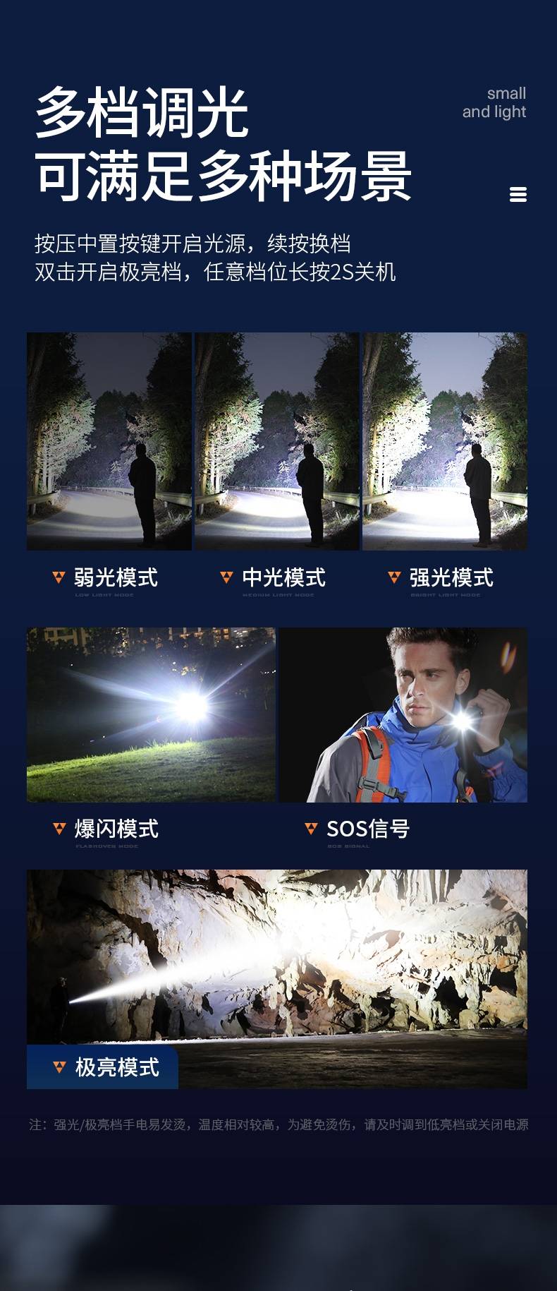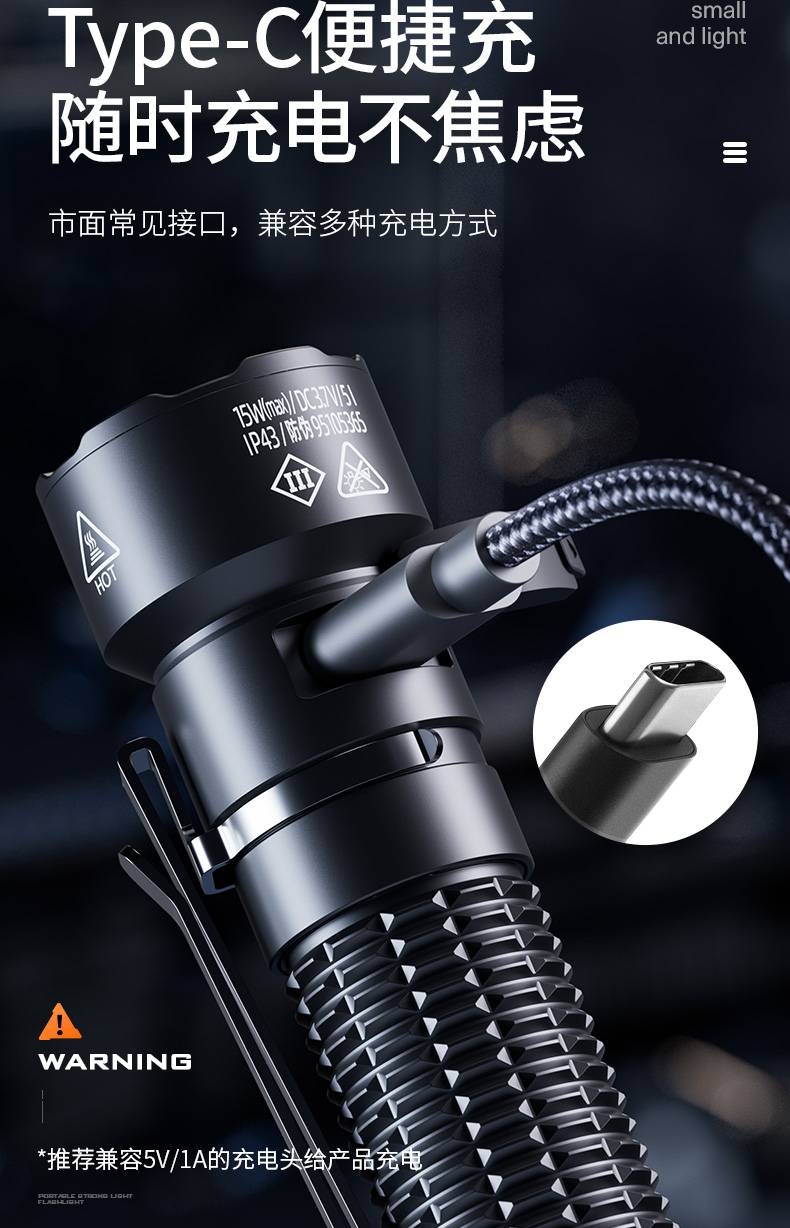四档调光 Type-C充电 电量显示 铝合金筒身 持久续航 强力防水