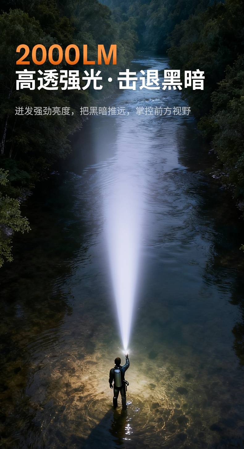 四档调光 Type-C充电 电量显示 铝合金筒身 持久续航 强力防水