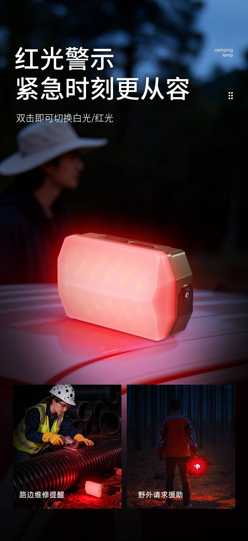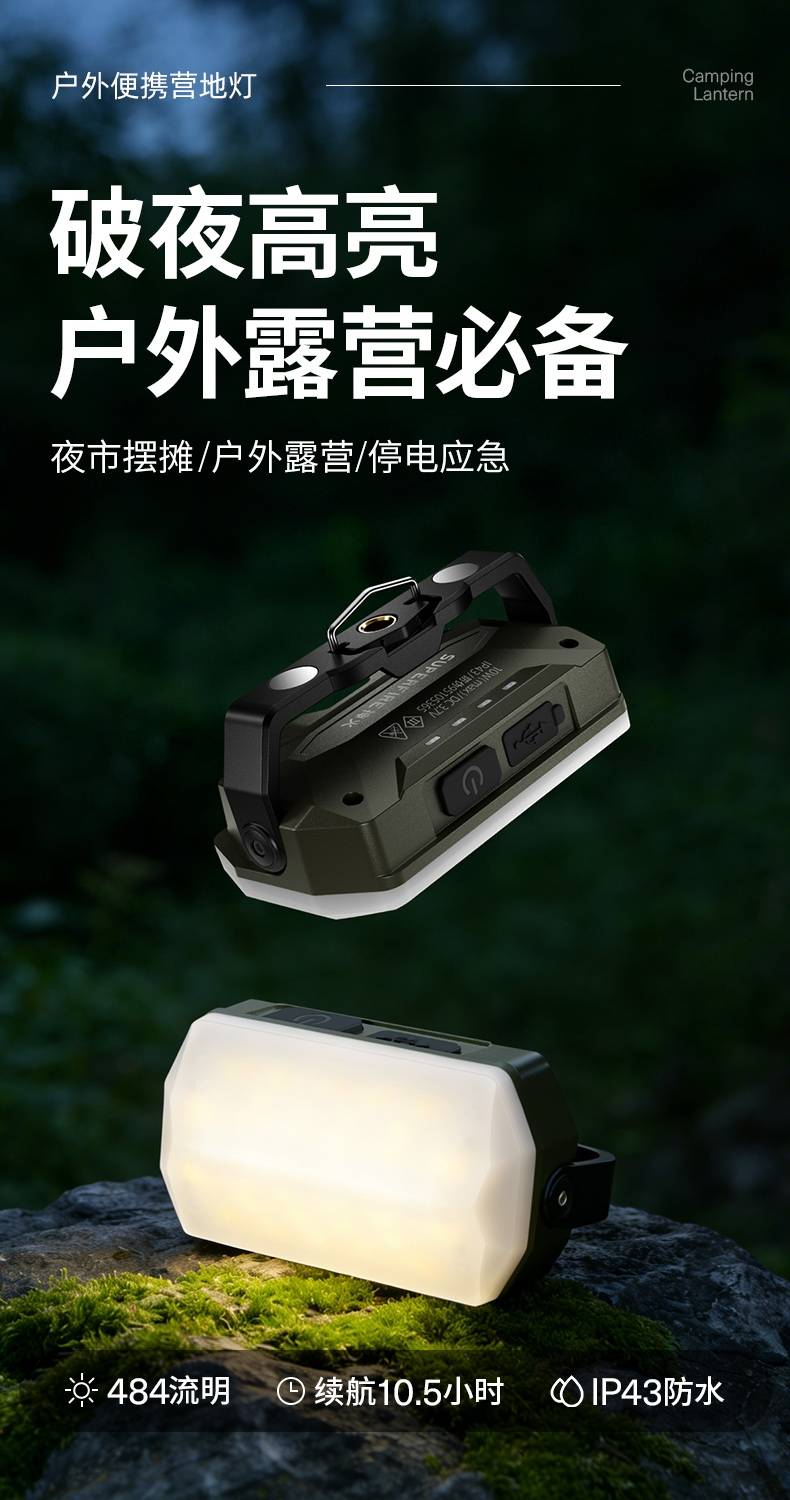4、多功能营地灯,此灯带有磁吸、螺母孔、挂钩、支架等功能。