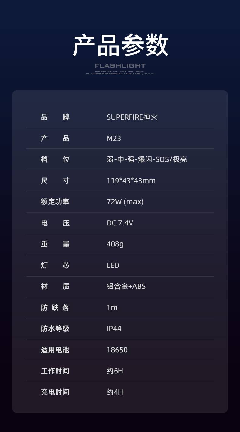 6、铝合金筒身设计,防摔抗击。