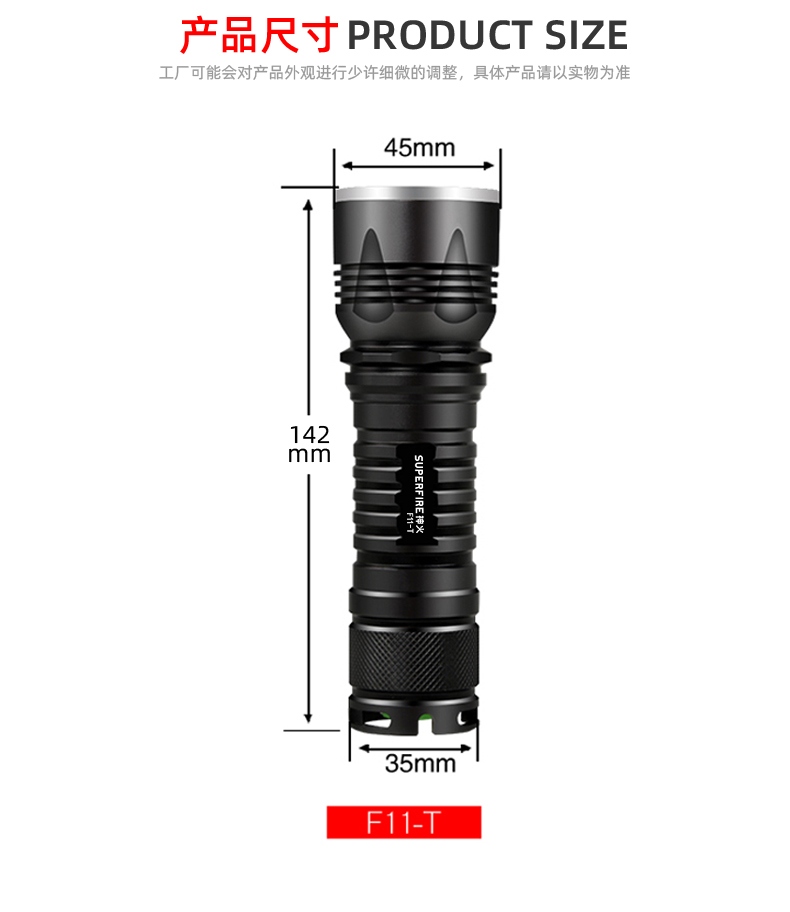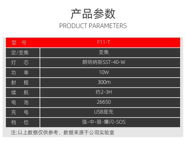 1、千米远射,射程更远,光斑更聚焦。 2、进口灯珠,亮度高,照明效果更好。 3、前后双按键,光源一键点亮,高亮瞬间开启。