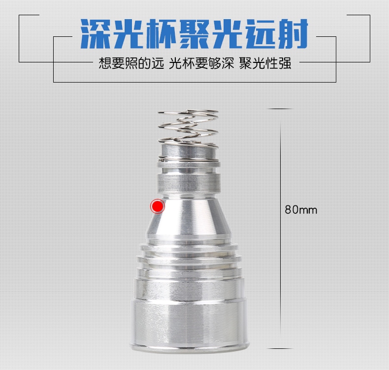 1、千米远射,射程更远,光斑更聚焦。 2、进口灯珠,亮度高,照明效果更好。 3、前后双按键,光源一键点亮,高亮瞬间开启。