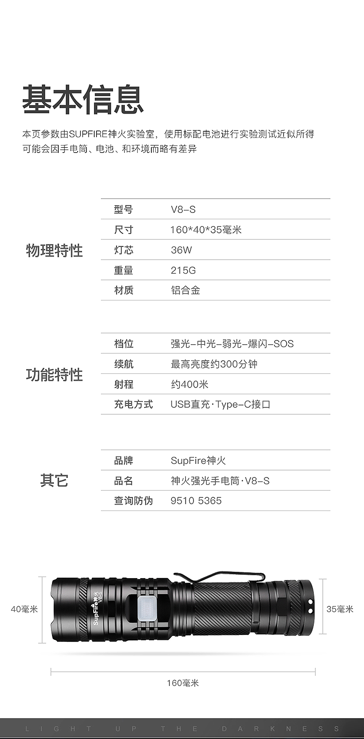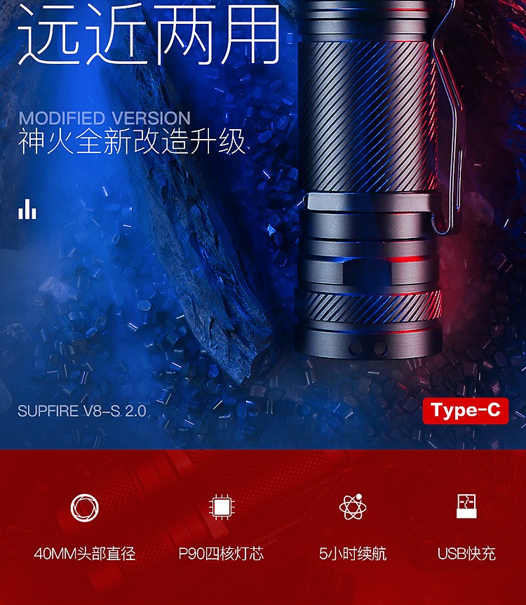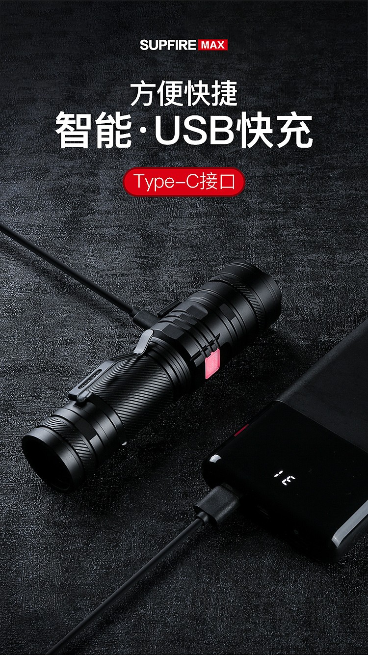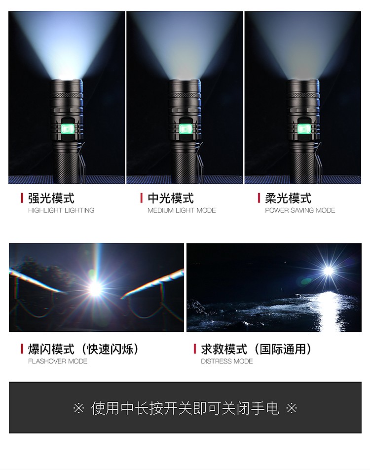 四档调光 Type-C充电 电量显示 铝合金筒身 持久续航 强力防水