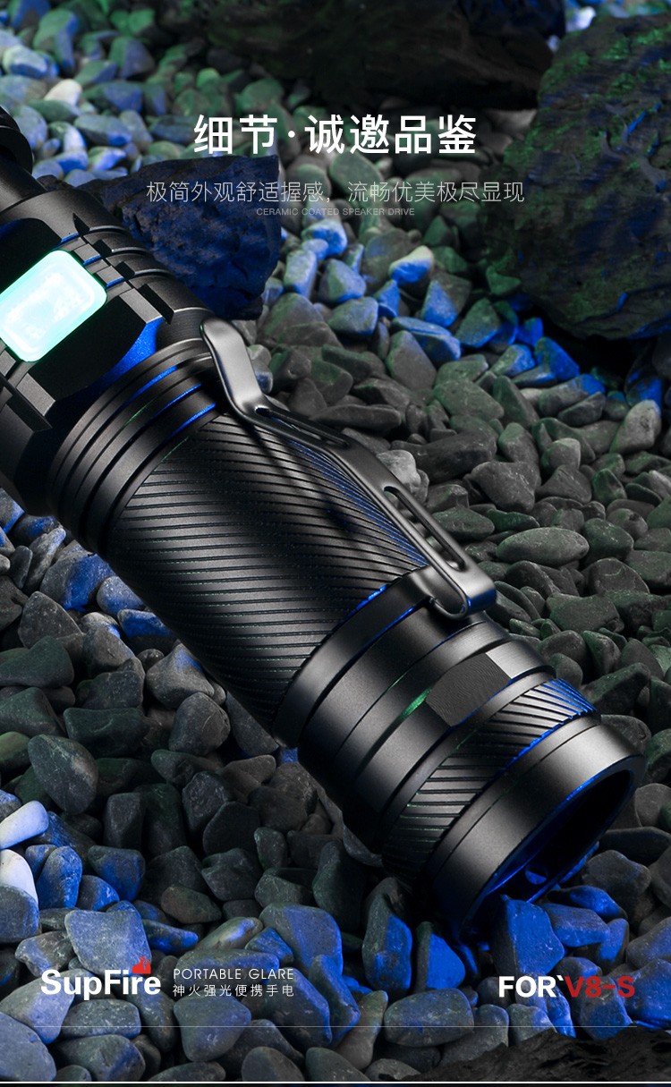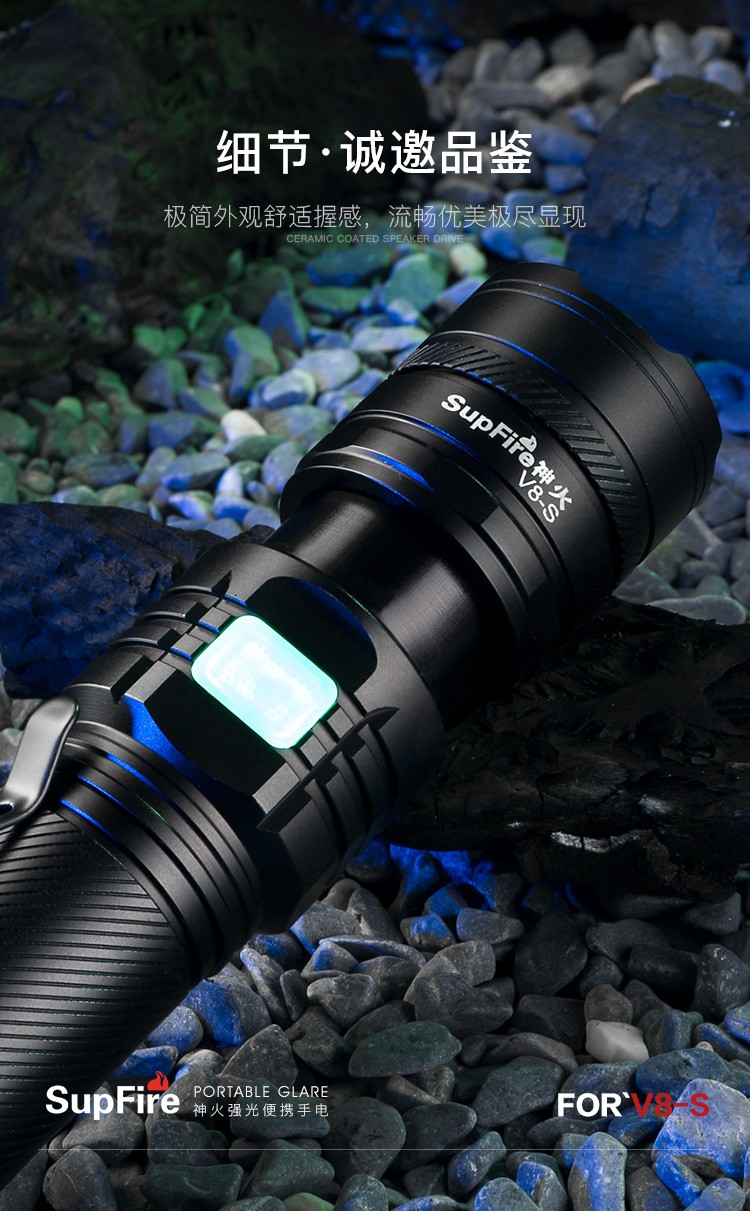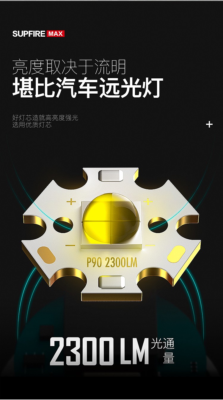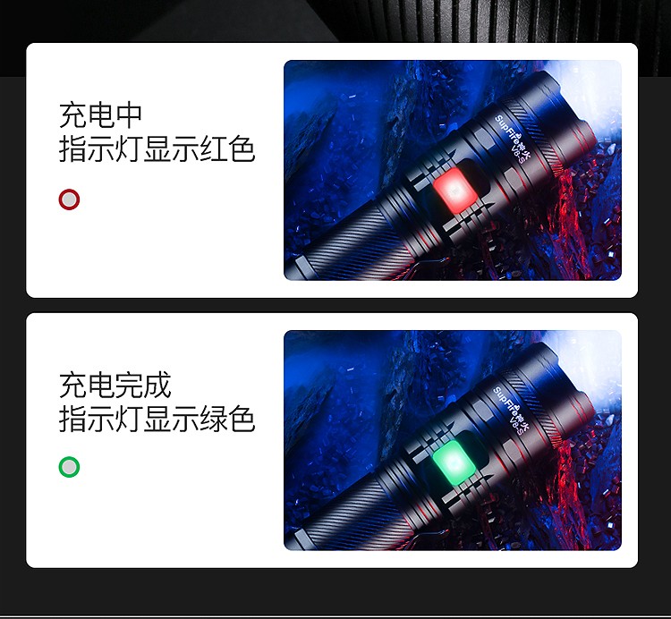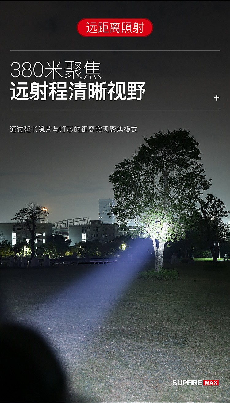 1、千米远射,射程更远,光斑更聚焦。 2、进口灯珠,亮度高,照明效果更好。 3、前后双按键,光源一键点亮,高亮瞬间开启。