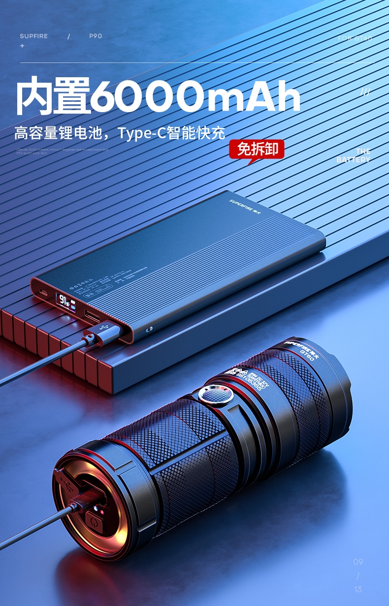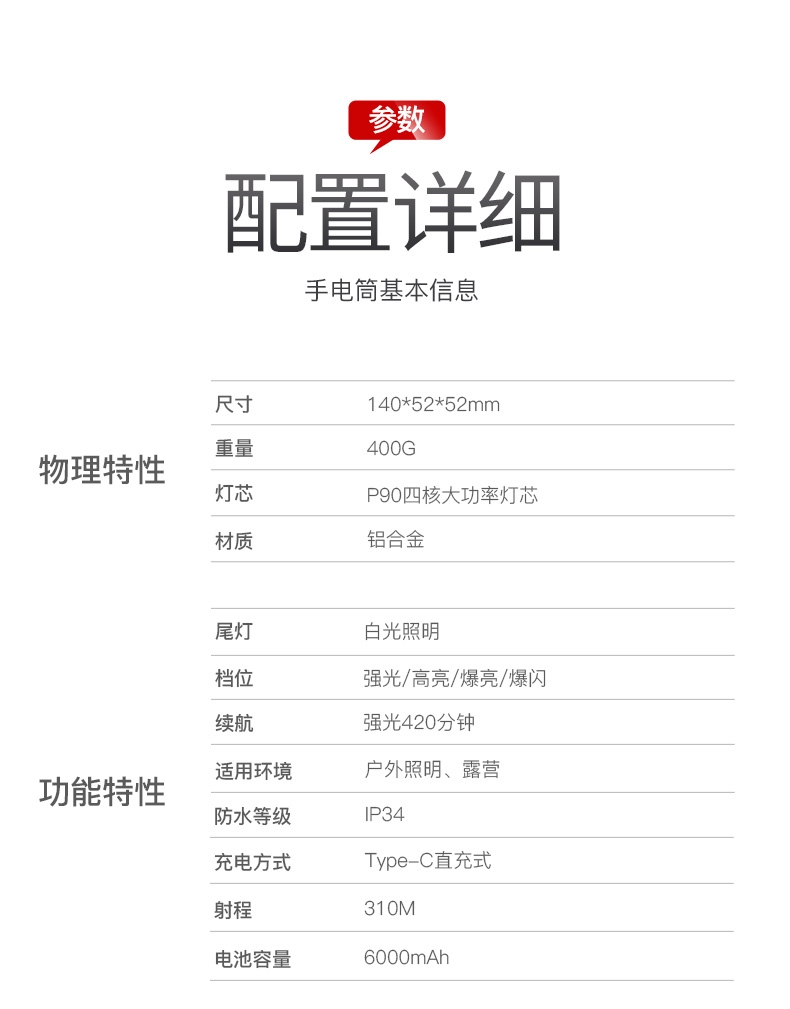 四档调光 Type-C充电 电量显示 铝合金筒身 持久续航 强力防水