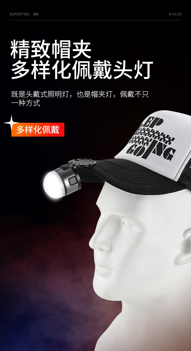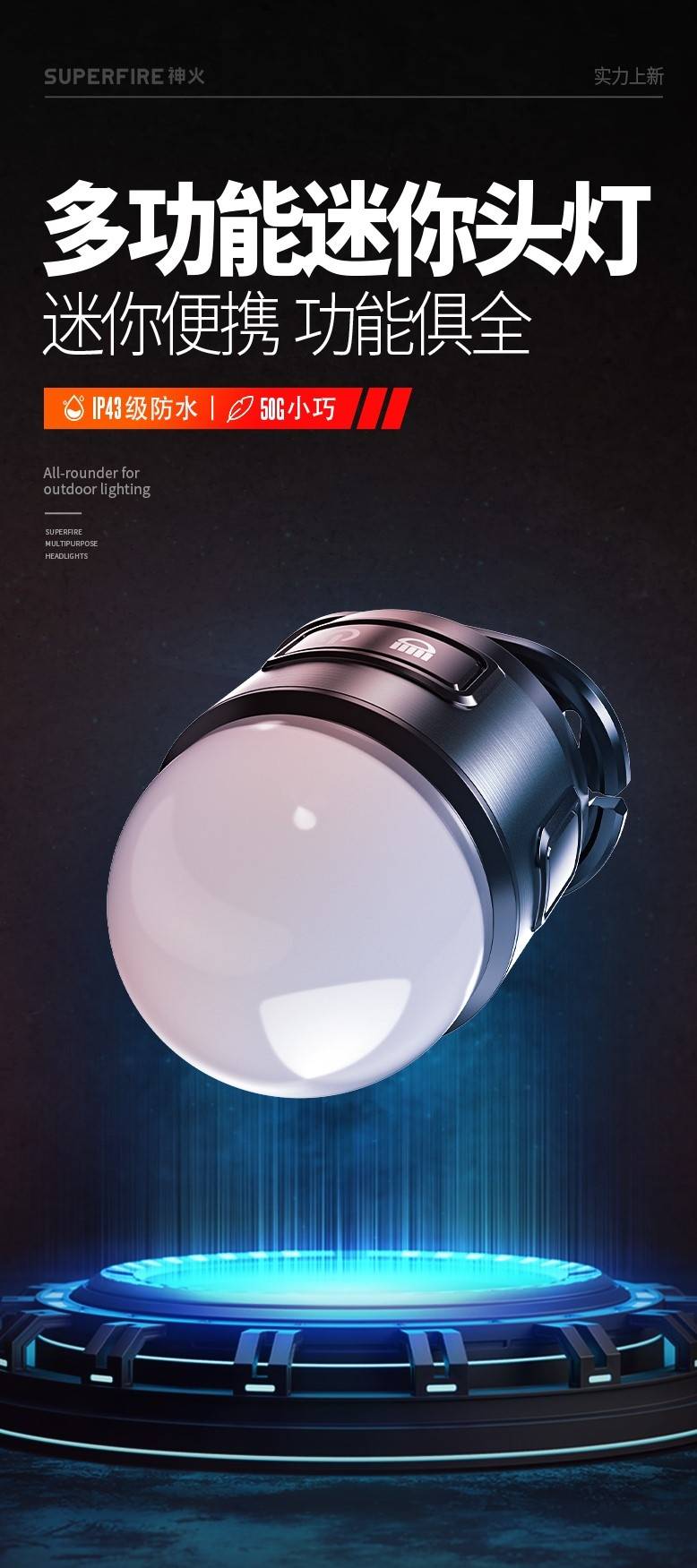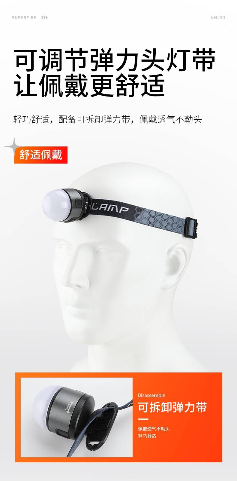 强光亮度,运动头灯,前后均衡设计,轻便不压头,可调节式头灯带,佩戴方便舒适,伸缩调焦,光照范围大,照射距离远,头灯角度调节,超90度角度随意调节,适宜各种环境使用