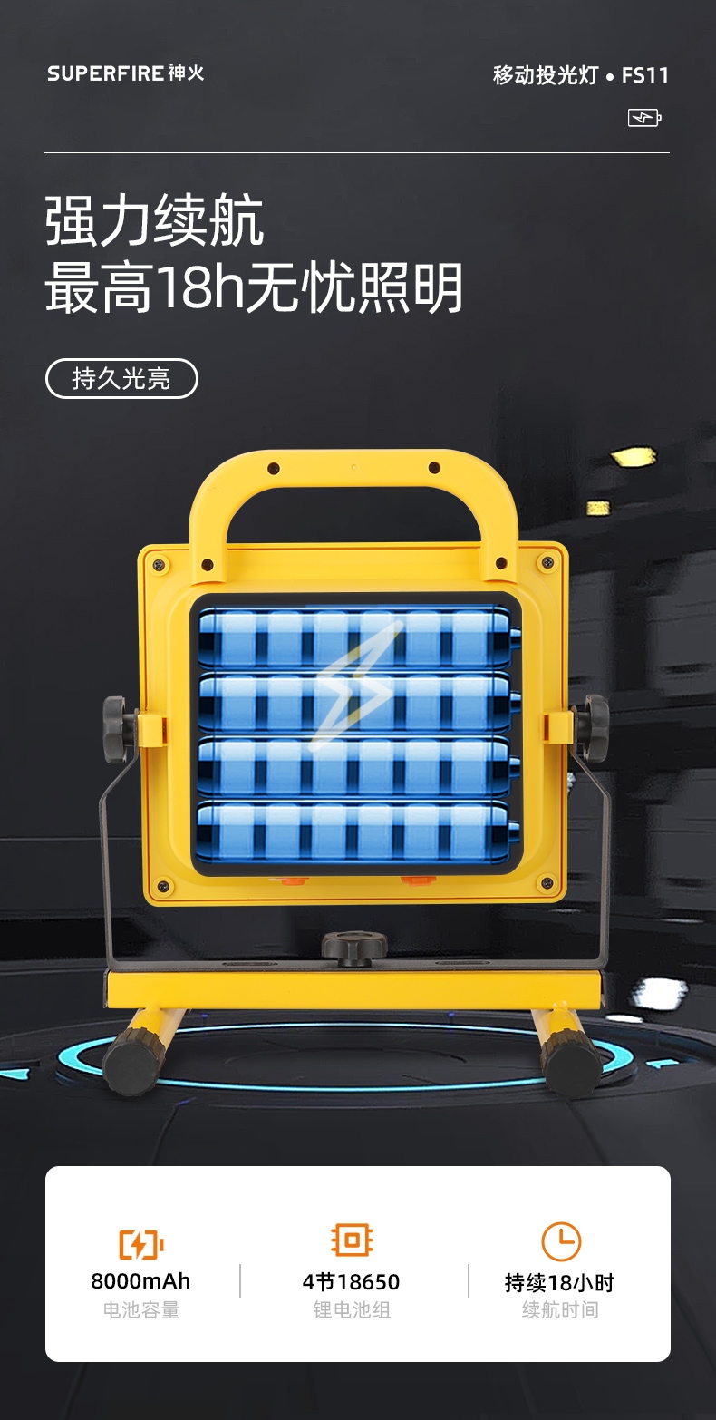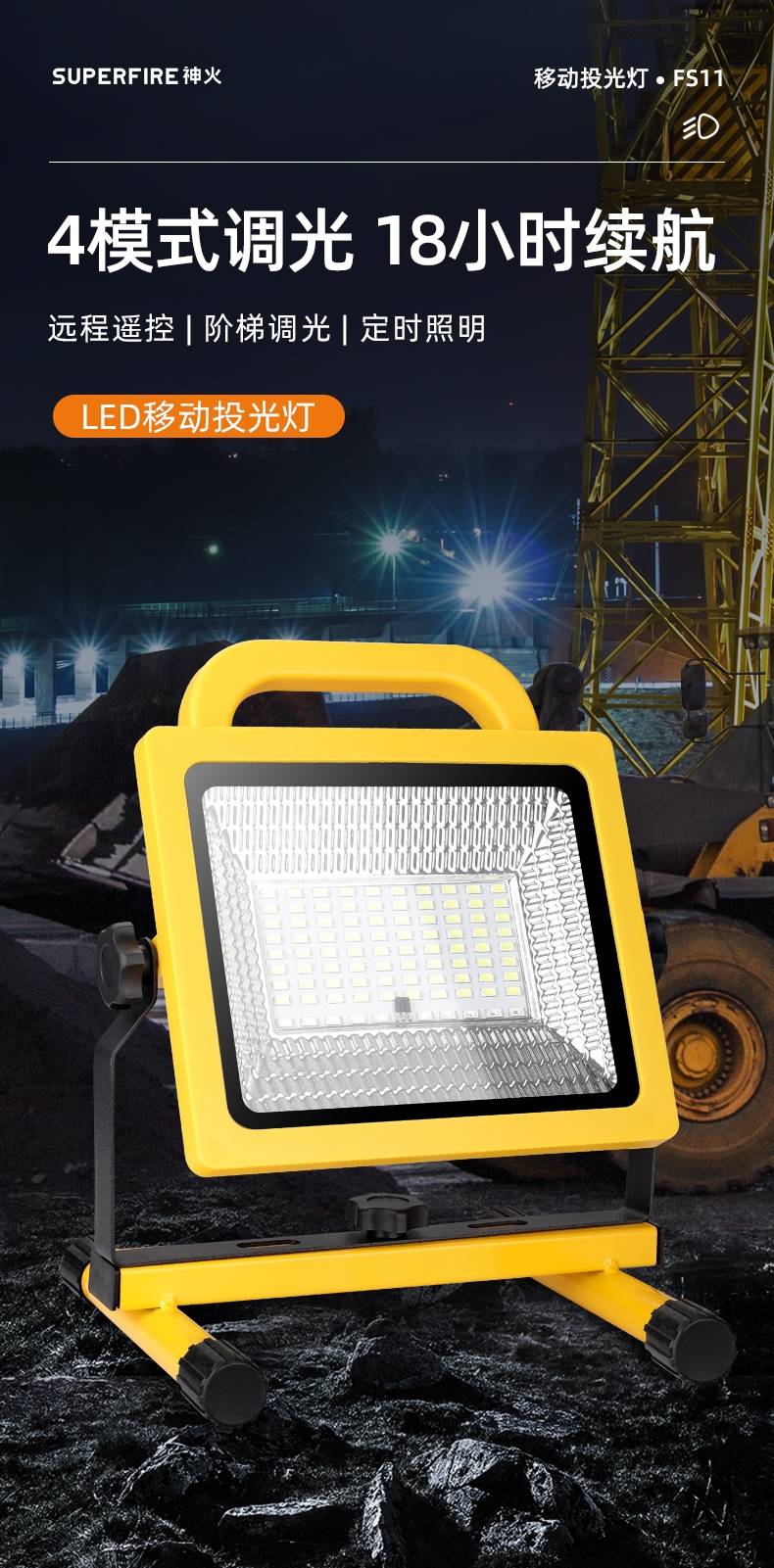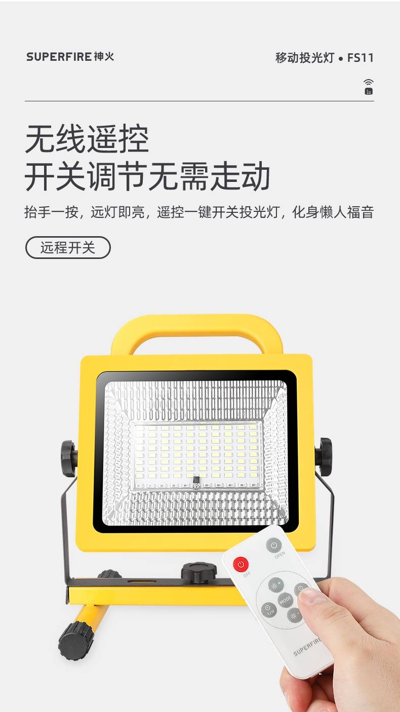 4模式调光 18小时续航 强光|中光|弱光|警示灯 远程遥控|阶梯调光|定时照明