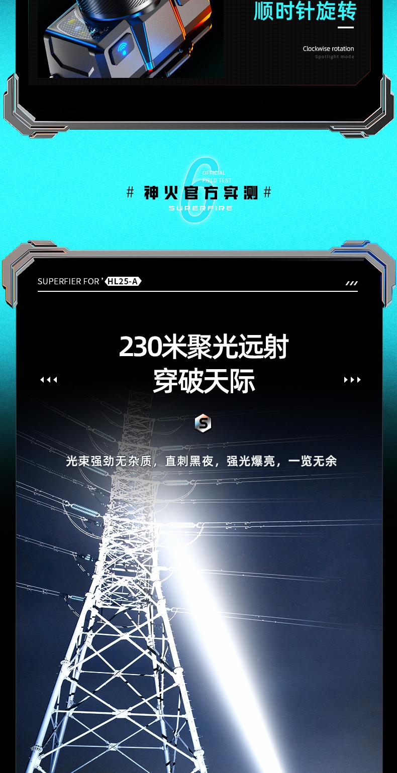 1、千米远射,射程更远,光斑更聚焦。 2、进口灯珠,亮度高,照明效果更好。 3、前后双按键,光源一键点亮,高亮瞬间开启。