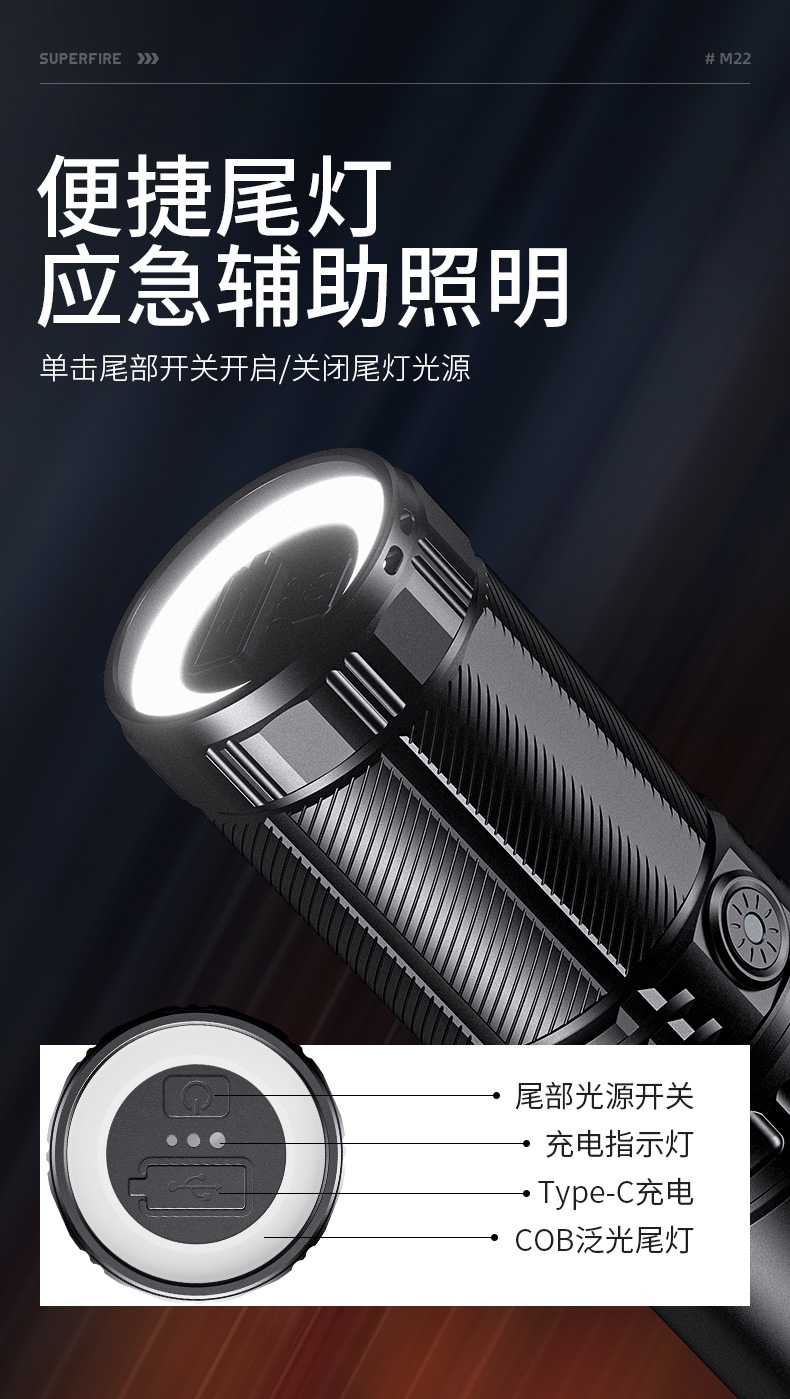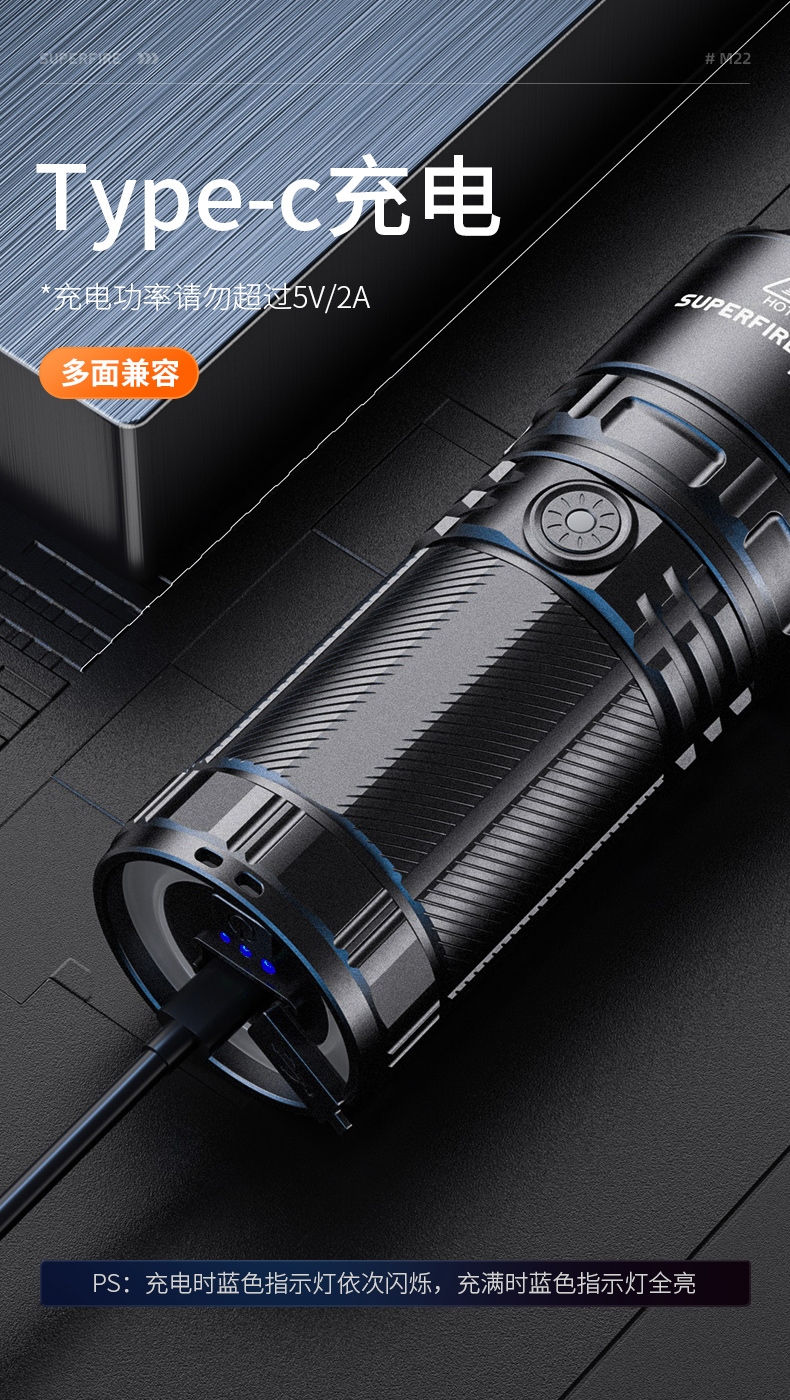 四档调光 Type-C充电 电量显示 铝合金筒身 持久续航 强力防水