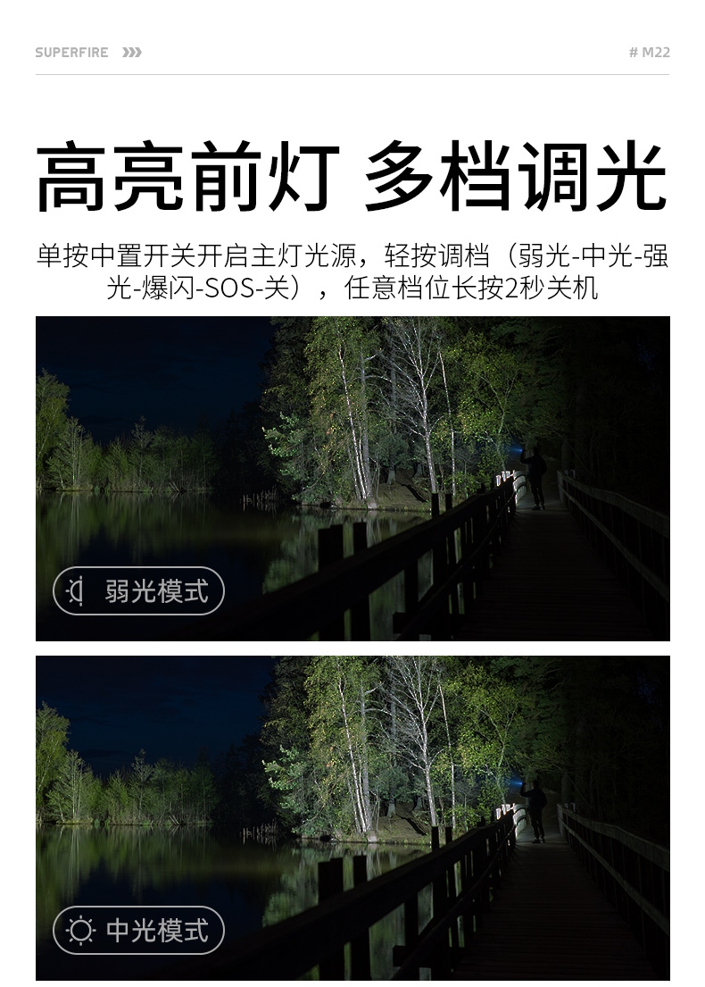 1、六档调光,可满足不同使用场景下的照明需求。 2、进口高亮朗明纳斯灯珠,照明效果更好。 3、含档位记忆,任意档位快捷关机 ,开机恢复关机前档位。